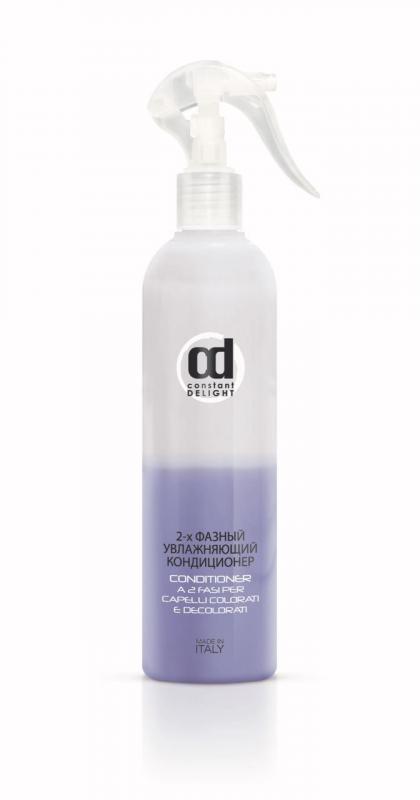 CONSTANT DELIGHT CONDITIONER IDRATANTE A 2 FAZI Кондиционер 2-х фазный для мелированных и обесцвеченных волос 400мл. Несмываемый двухфазный кондиционер. Молочные кислоты, препятствующие потере влаги, увлажняют и придают блеск сухим, пористым и непослушным волосам. Содержит UV-фильтры, защищая от негативного воздействия окружающей среды. Обеспечивает мгновенный эффект. Незаменим в уходе за волосами в любое время года. Применение : перед нанесением тщательно встряхнуть флакон, чтобы смешать две фазы кондиционера. Распылить на чистые волосы перед укладкой или во время укладки на расстоянии 20-30 см. Не смывать.