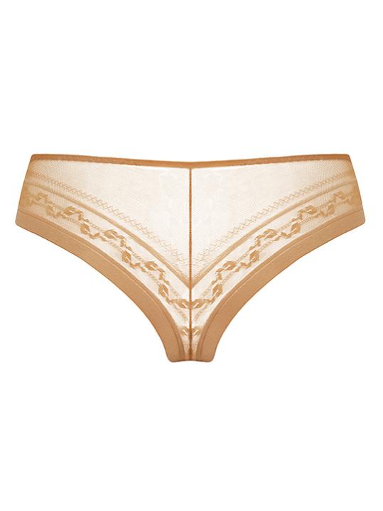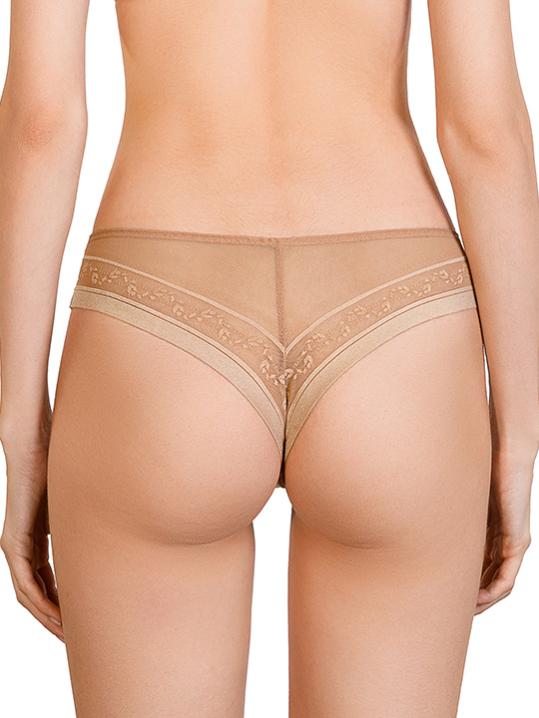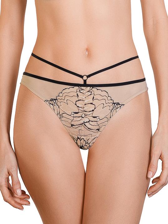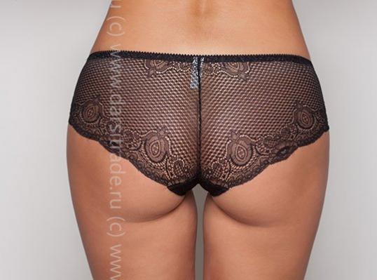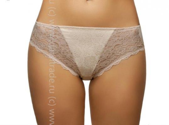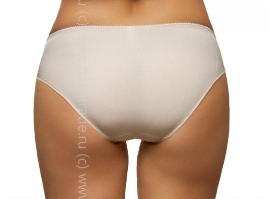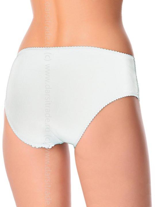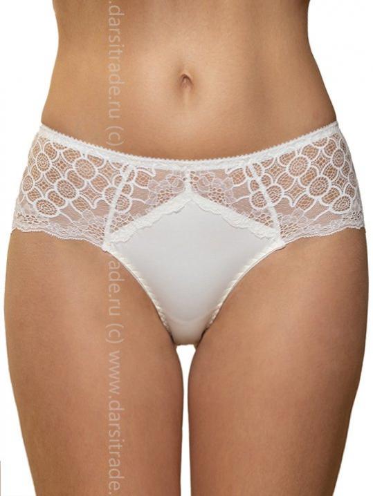 Трусы-слип со средней линией талии. Выполнены из тончайшего немецкого эластичного кружева. Срезы по краю ножек обработаны на плоскошовной машине. Украшение: атласный бантик.