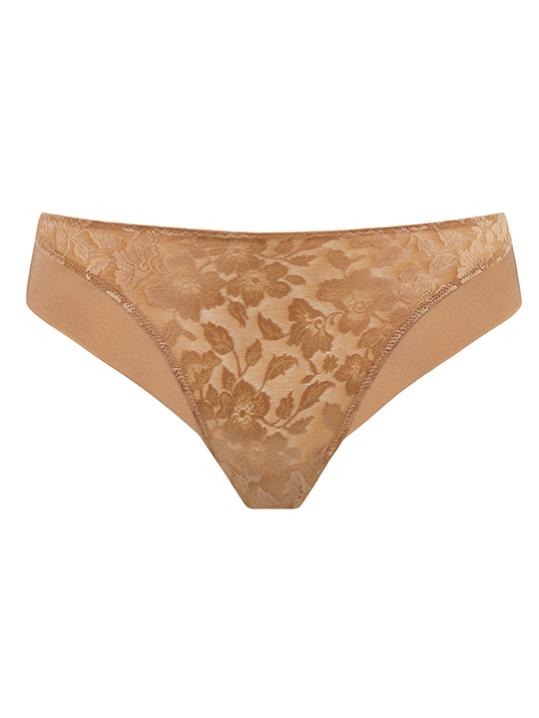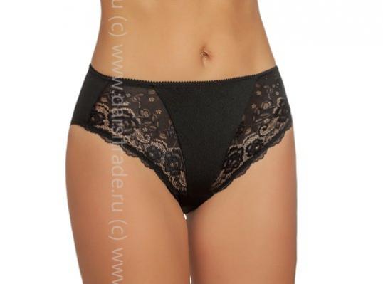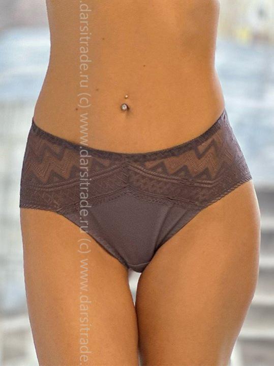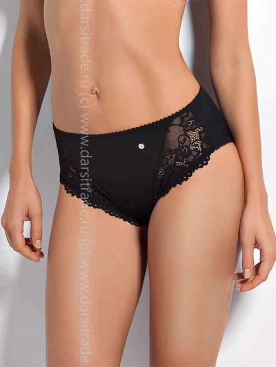 Трусы-слип со средней линией талии. Выполнены из микрофибры без блеска и эластичного кружева с орнаментом "