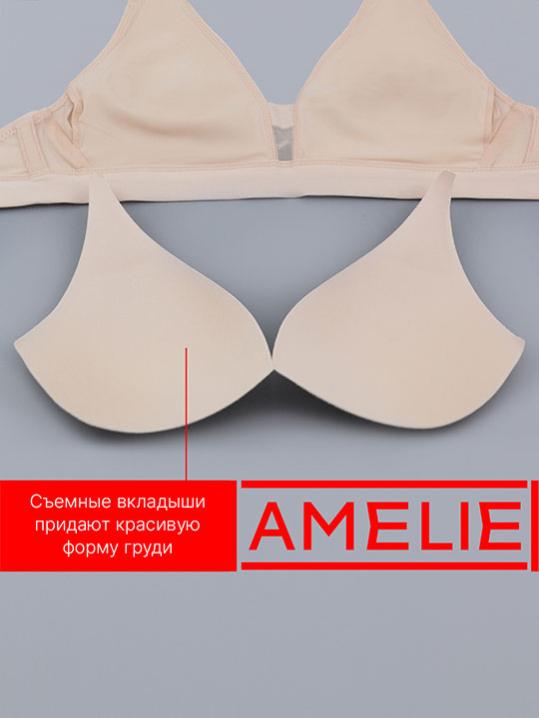 Бралетт с двухслойными мягкими чашками без костей. Съемные формованные вкладыши. Несъемные, регулируемые бретели. Застежка в два ряда на три позиции. Выполнен из микрофибры. Коллекция "