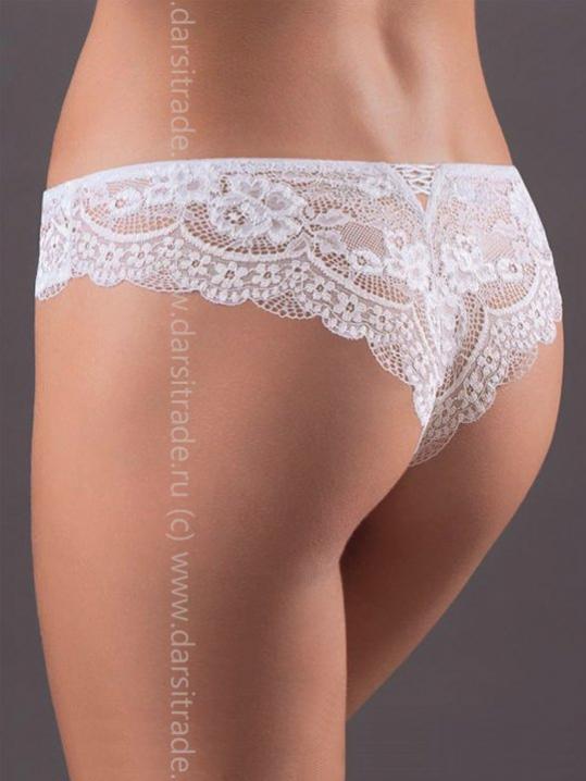 Трусики-бразильяна из мягкого кружева с объемным, ярко-выраженным рисунком. Декоративная шнуровка на спинке добавляет нотку игривости модели.