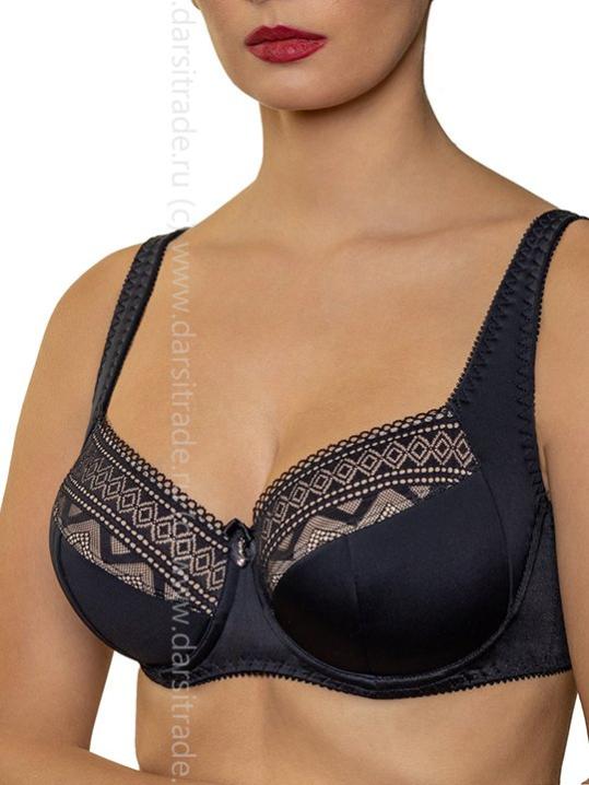 с градуированной чашкой, на косточках. Средний размер пуш-ап. Съемные бретели, широкие резинки на спинке усилены силиконом, что позволяет носить модель без бретелей. Застежка в два ряда на три позиции. Выполнен из микрофибры. Коллекция "