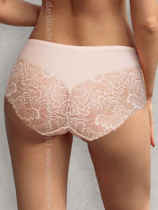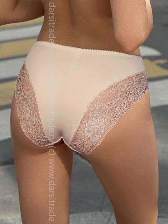 Трусы-слип (панти) 320 с средней линией талии. Выполнены из микрофибры и эластичного кружева. Срезы по краю ножек обработаны на плоскошовной машине.