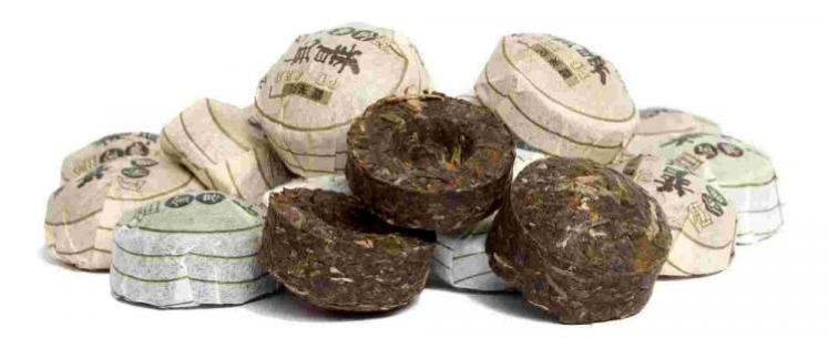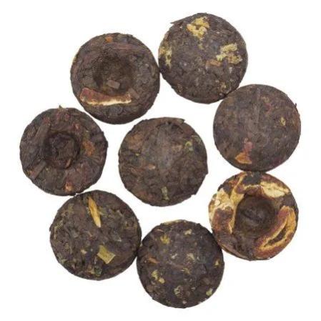 черный чай и цедра апельсина.роз спрессован в небольшие круглые «таблетки». Прессованный Пу Эр Шу, из уезда Пу Эр провинции Юннань.