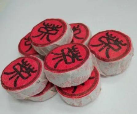 Прессованный шу Пу эр из уезда Пу эр, провинции Юннань. Листья со старых пуэрных деревьев спрессованы в небольшие кирпичики вместе с цветком хризантемы. Темный цвет напитка сочетается с прозрачным ароматом цветов хризантемы.