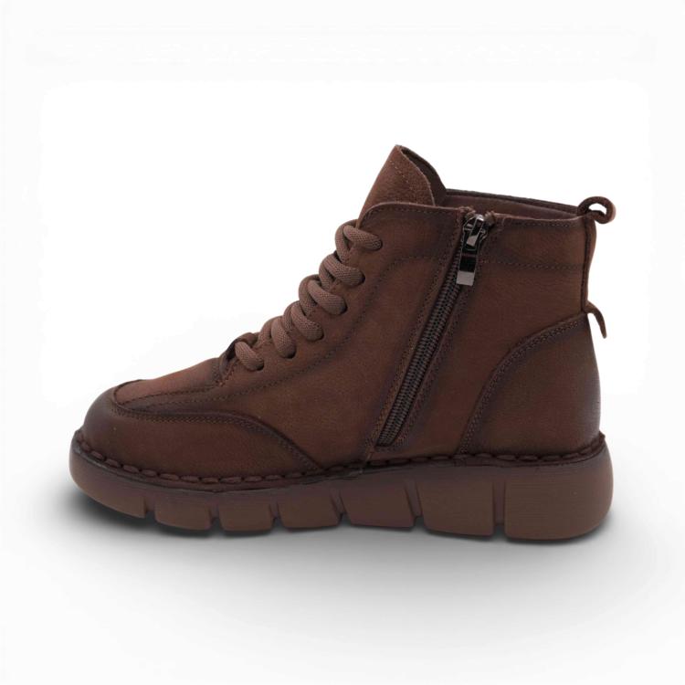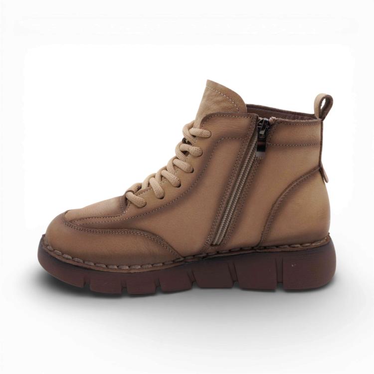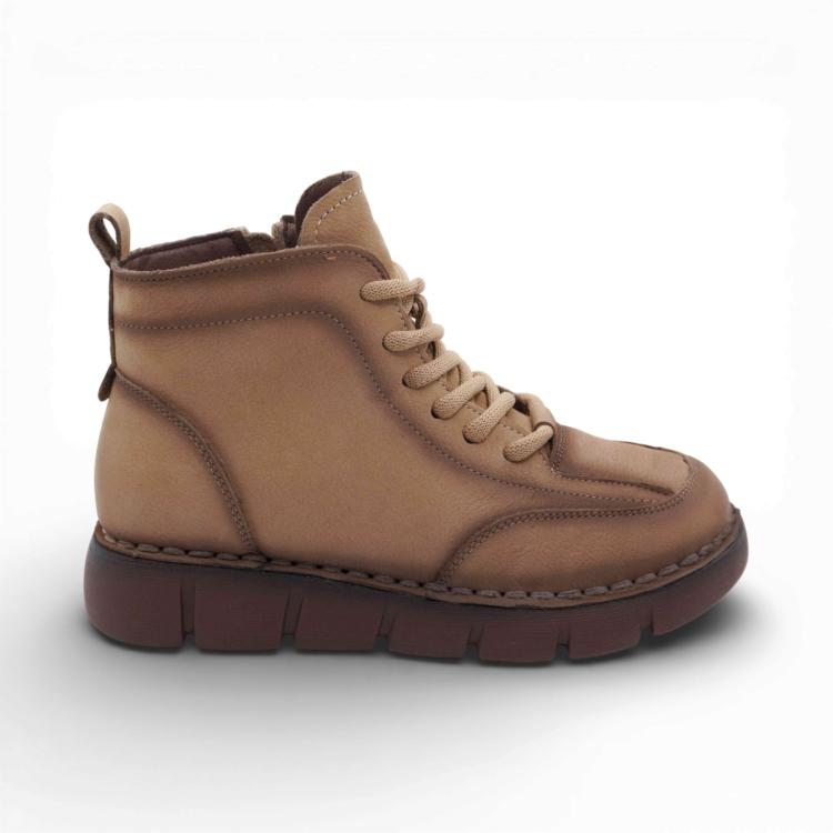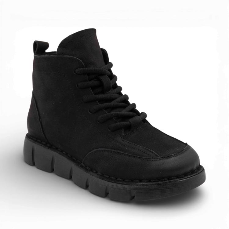 Ботинки женские выполнены из натуральной кожи, оснащены нескользящей подошвой, что делает их идеальным выбором для туризма и активных прогулок по городу..