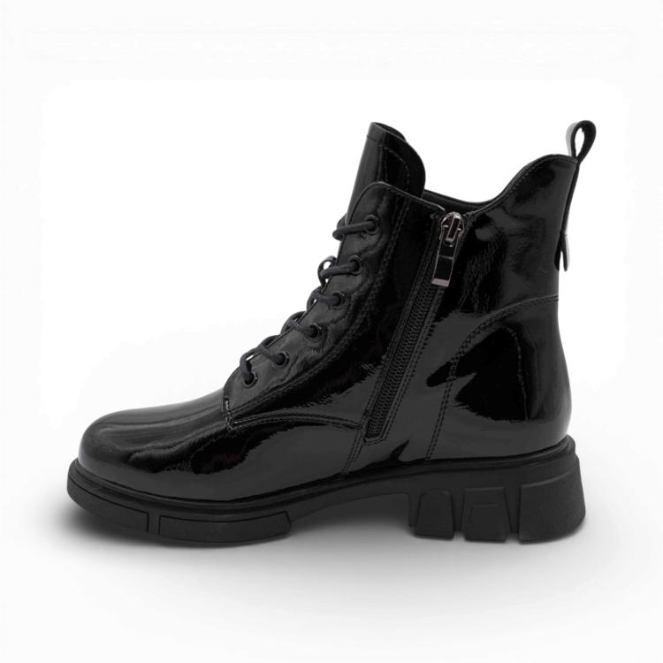 Ботильоны из натуральной кожи - удачный вариант для вечернего или повседневного гардероба. Кожа прочная и дышащая, хорошо переносит перепады температур. Ботинки хорошо садятся по ноге и при правильном уходе долго носятся. Благодаря лаковой обработке кожа приобретает блестящую глянцевую поверхность.