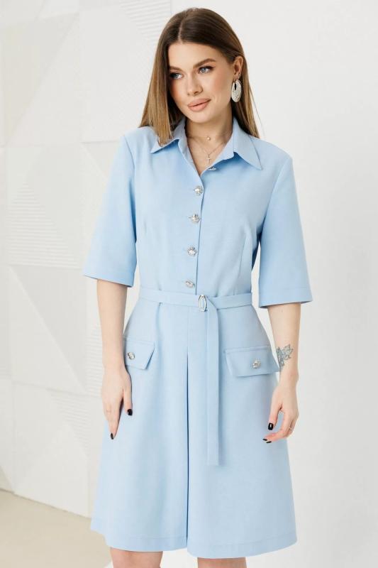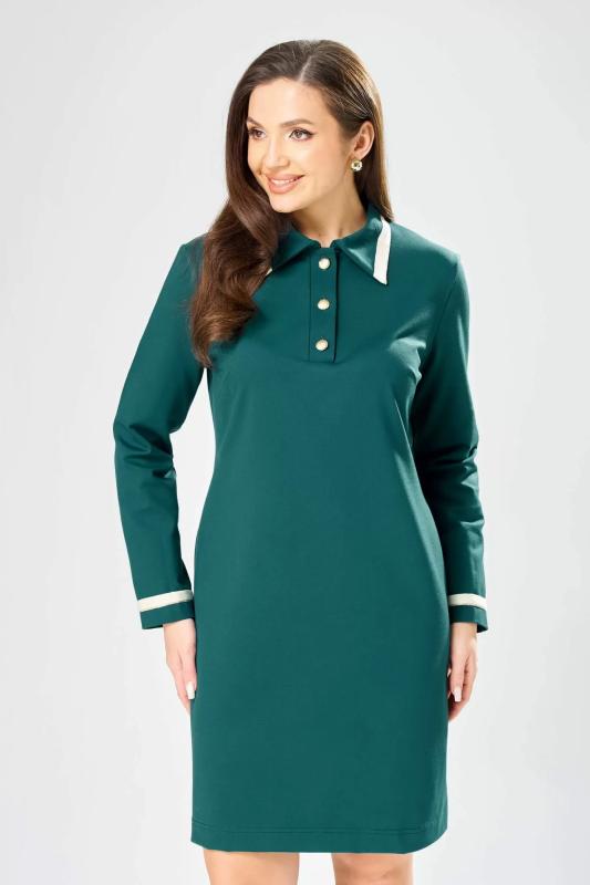 7519 Платье женское Женственное и универсальное платье, которое легко впишется как в деловой гардероб, так и в более нарядные образы. Модель выполнена из мягкого фактурного трикотажа с рубчиком — ткань приятна к телу, хорошо держит форму и обеспечивает комфорт в течение всего дня. Полуприлегающий силуэт аккуратно подчеркивает фигуру, не сковывая движений, а продуманные вытачки по переду и спинке создают красивую посадку, особенно для женщин с формами. Вертикальный фигурный подрез по центру визуально вытягивает силуэт и делает образ стройнее. Контрастная планка с декоративными пуговицами добавляет изящный акцент и эффектно имитирует застежку, придавая платью стильный и ухоженный вид. Отложной воротник придает модели нотки классики и делает платье уместным для офиса, деловых встреч и повседневных выходов. Длинный втачной рукав обеспечивает дополнительный комфорт и делает модель идеальной для прохладного сезона. П