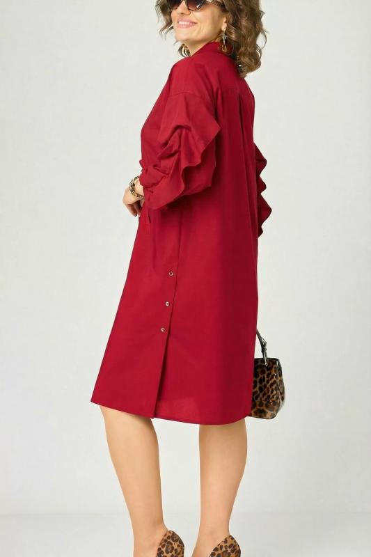 Дизайн: платье-рубашка с длинными рукавами, воротником и застёжкой на пуговицы. Пояс на талии подчёркивает фигуру, придавая образу женственность и изысканность