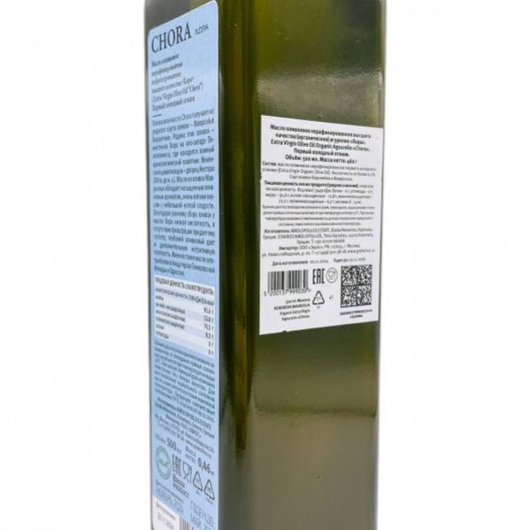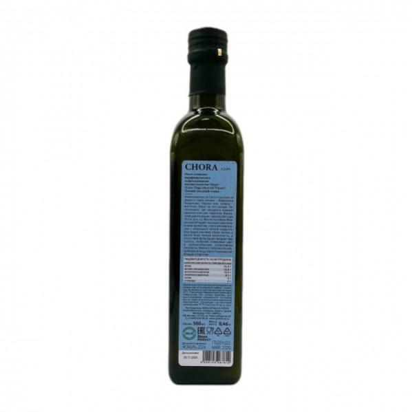 Оливковое масло Chora получают из редкого сорта оливок - Мавроэлья Хораитики и добавлением небольшого количества оливок сорта Коронейки.