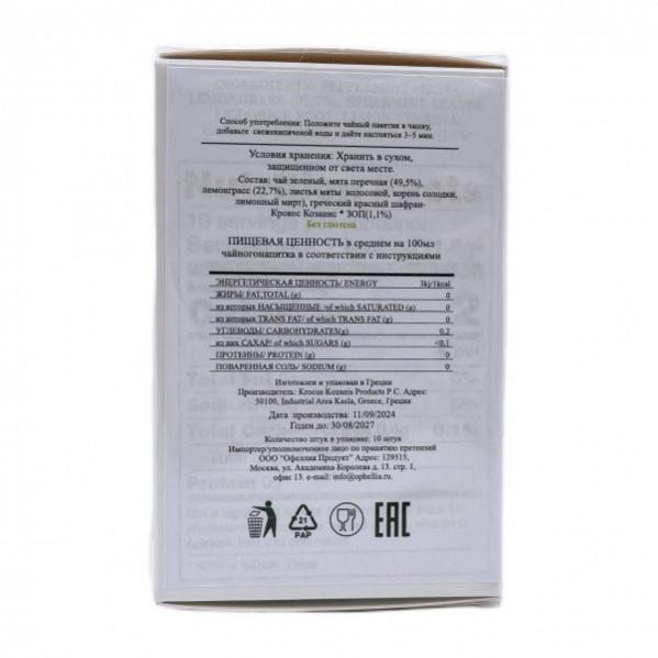 Освежающий чайный напиток с мятой, лемонграссом и греческим красным шафраном.
