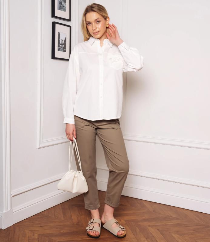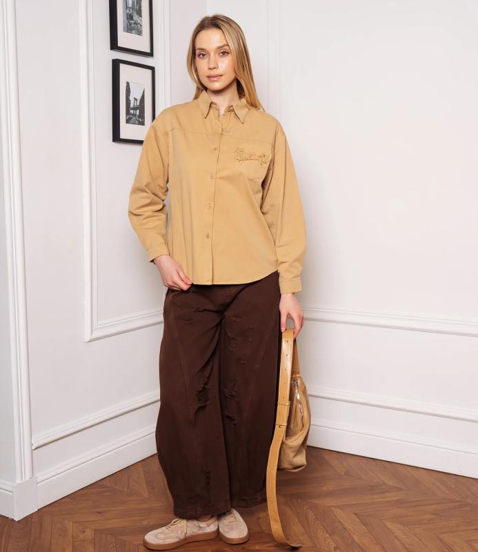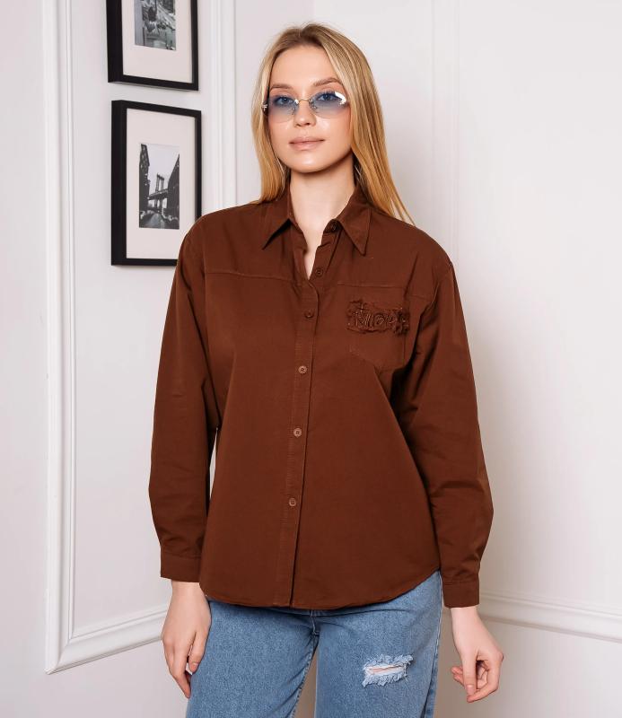 Рубашка — это часть гардероба, которая подчёркивает привлекательность и индивидуальность любой женщины. Рубашка прямого кроя с классическим воротником, застёжкой на пуговицах, длинными рукавами с манжетами. Имеет накладной карман на груди с декоративной отделкой, изогнутый подол. Ткань гладкая, с лёгкой текстурой, силуэт универсальный — подходит для деловых и повседневных образов. Для пошива использована ткань: 100% хлопок. Мы предлагаем выгодные оптовые условия, гибкую ценовую политику и надёжные поставки для магазинов. Установленная цена адекватна и позволит вам формировать привлекательную наценку и обеспечивать высокую оборотность. Предложите своим покупательницам рубашку, сочетающую комфорт, качество и повседневную элегантность. Вы будете носи