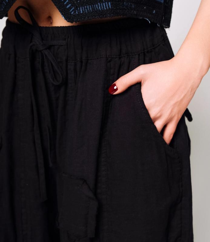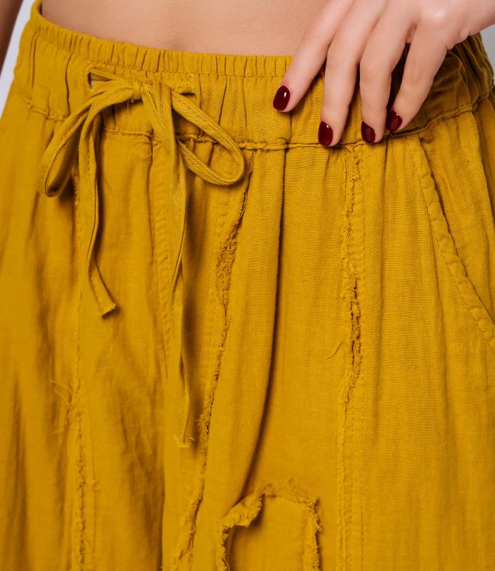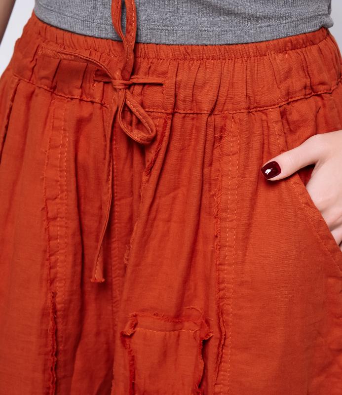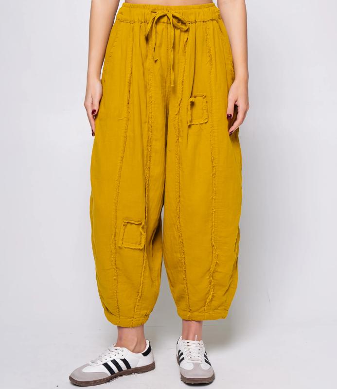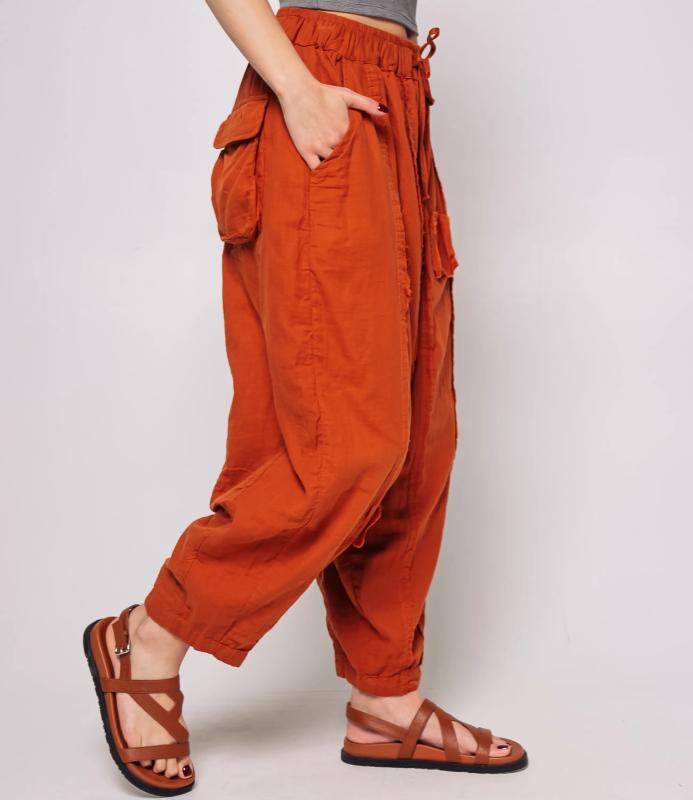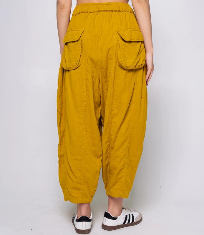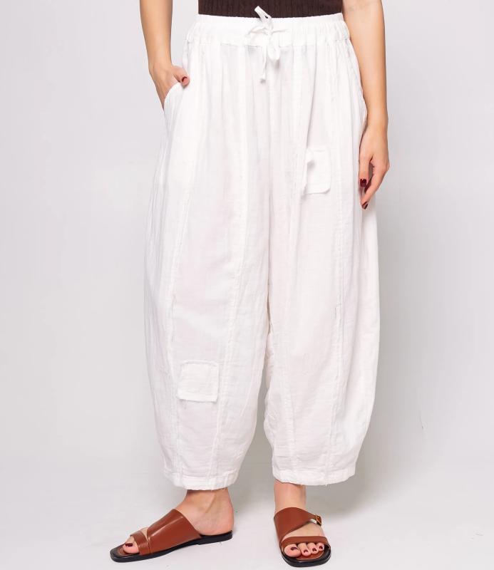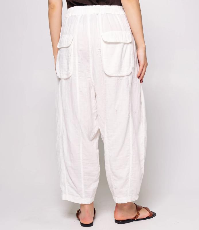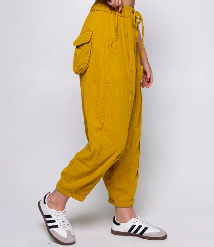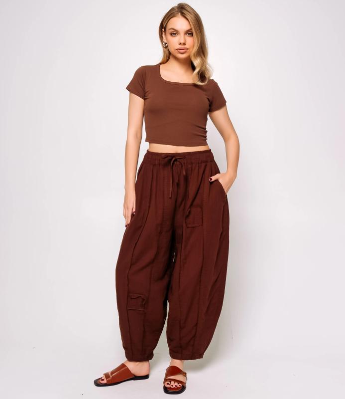 Брюки — это одежда, которая подчеркивает привлекательность любой женщины. Брюки свободного кроя из лёгкой мятой ткани. Эластичный пояс с завязками, широкие штанины с манжетами. Декоративные накладные карманы квадратной формы на бедре и колене. Вертикальные швы по длине. Мягкий материал, не сковывающий движения. Стиль — кэжуал с этническими мотивами. Для пошива использована ткань из 100% хлопок, которая характеризуется отменным качеством. Даже после многократных стирок изделие не утратит первоначальной привлекательности. Вы сможете предлагать их своим покупателям с радостью. Обратите внимание на цвет: он насыщенный и полностью соответствует фотографии на сайте. Чтобы вы были уверены в размере, мы представили на странице таблицу размеров. Воспользовавшись ею, вы сможете сами обмерить себя и удостовериться