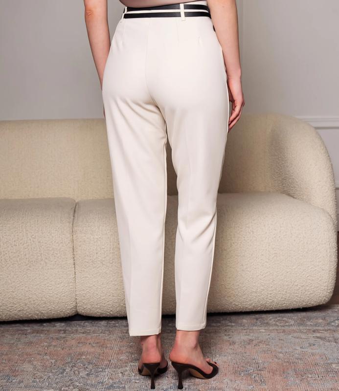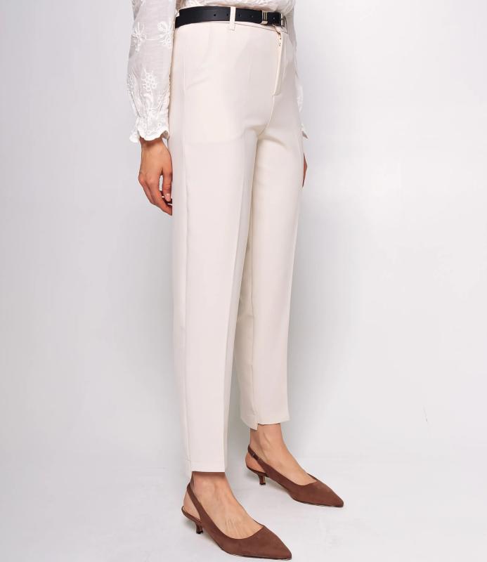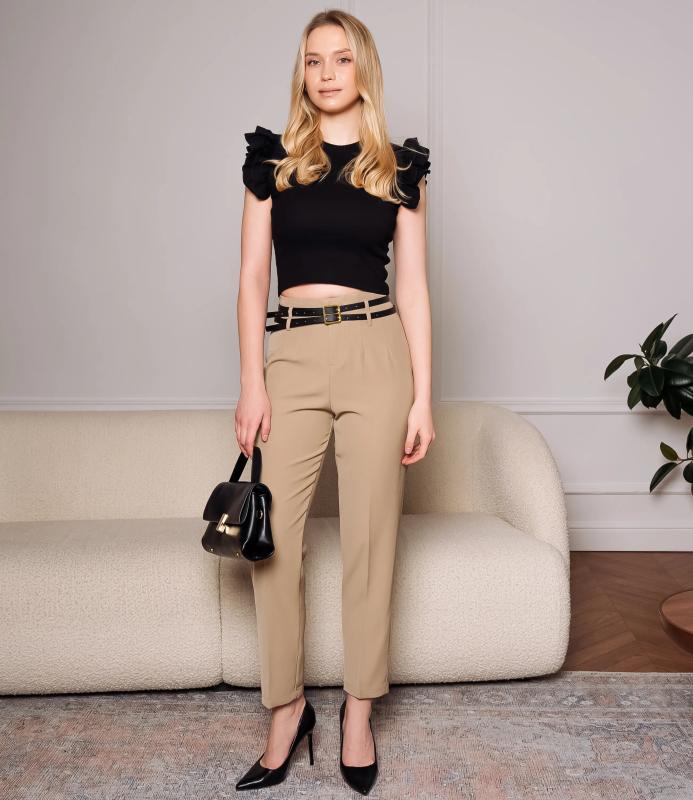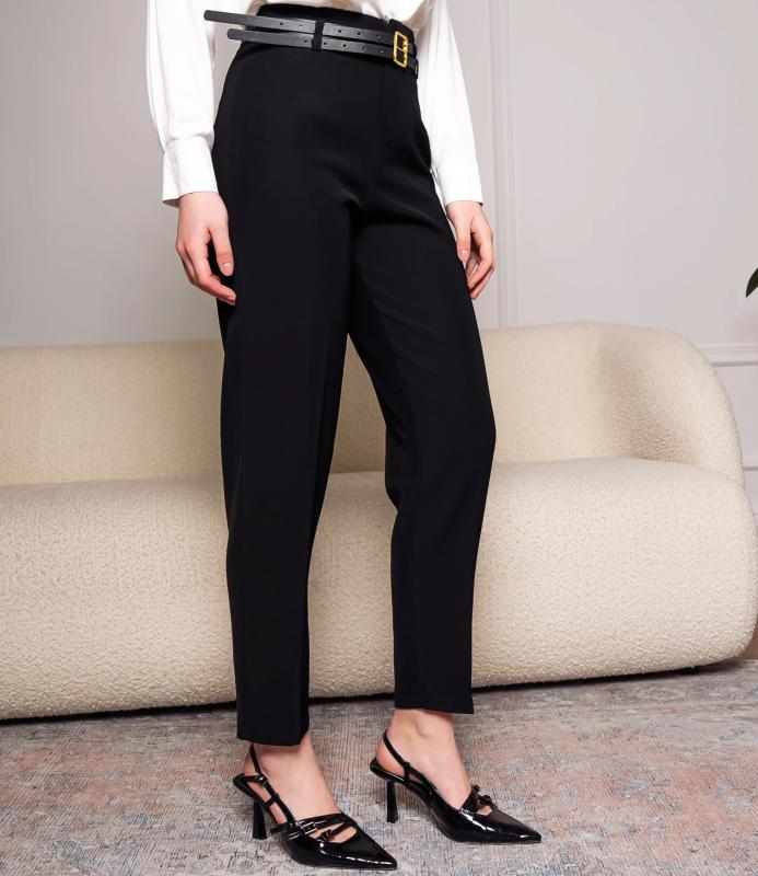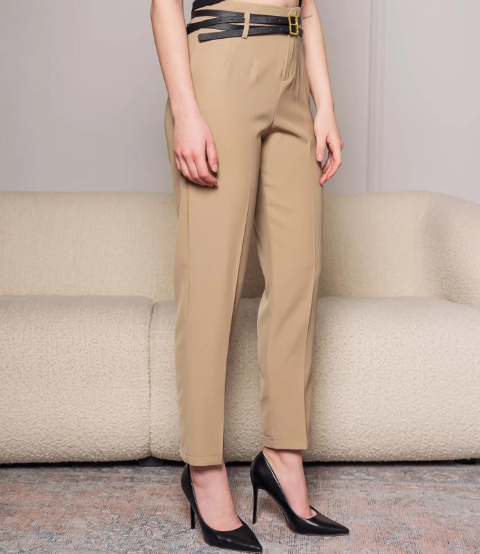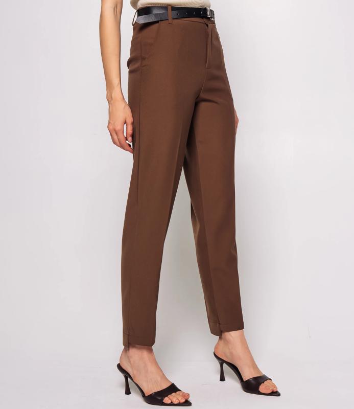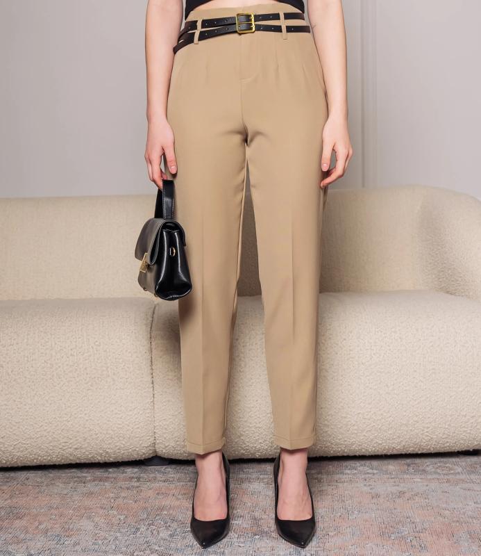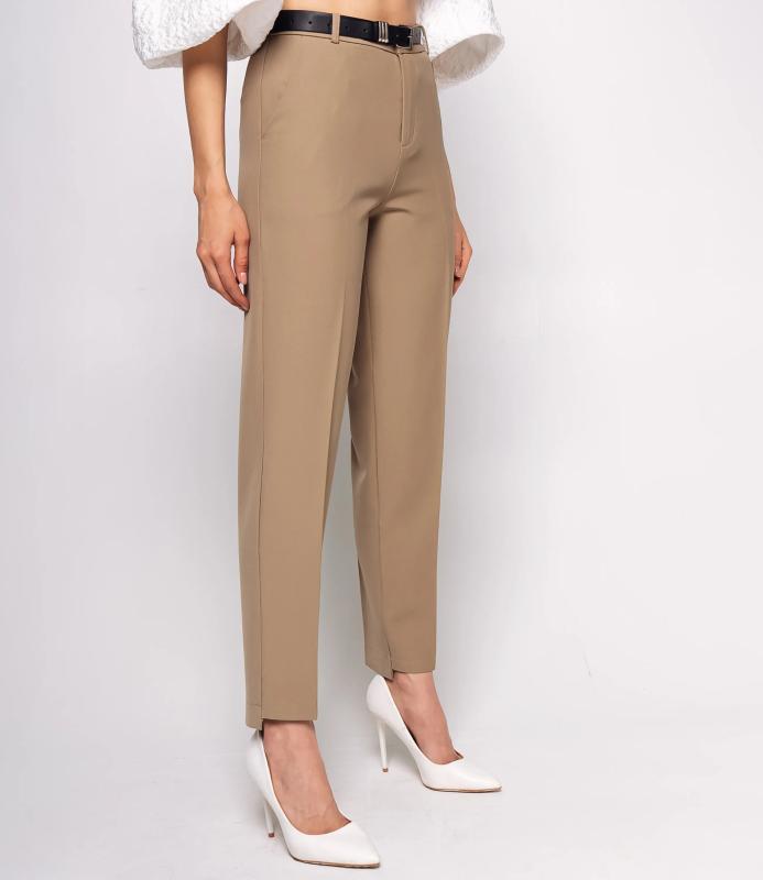 Брюки — это одежда, которая подчеркивает привлекательность любой женщины. Брюки классического кроя с высокой посадкой, зауженного фасона. Оснащены интегрированным поясом с ремнём и металлической пряжкой. Имеют вытачки на передней части для плотной посадки в области бёдер, боковые карманы. Ткань плотная, держит форму. Сочетают строгость классики с современной укороченной длиной. Для пошива использована ткань из 65% полиэстер и 35% хлопок, которая характеризуется отменным качеством. Даже после многократных стирок изделие не утратит первоначальной привлекательности. Вы сможете предлагать их своим покупателям с радостью. Обратите внимание на цвет: он насыщенный и полностью соответствует фотографии на сайте. Чтобы вы были уверены в размере, мы представили на странице таблицу размеров. Восполь