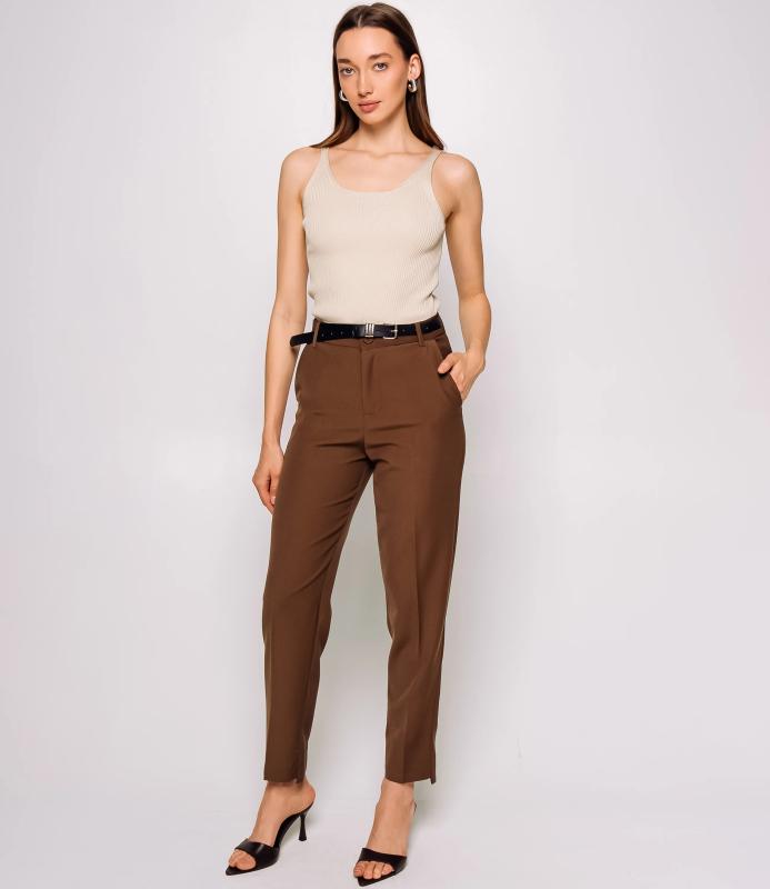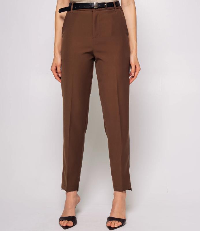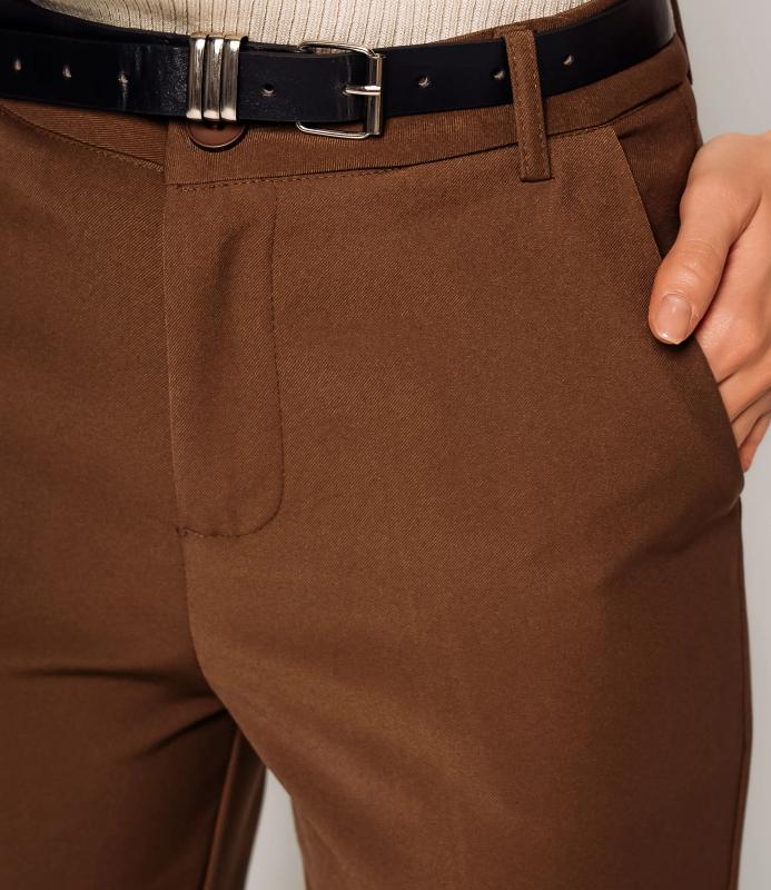 Брюки — это одежда, которая подчеркивает привлекательность любой женщины. Брюки классического кроя с высокой посадкой, зауженного фасона. Оснащены интегрированным поясом с ремнём и металлической пряжкой. Имеют вытачки на передней части для плотной посадки в области бёдер, боковые карманы. Ткань плотная, держит форму. Сочетают строгость классики с современной укороченной длиной. Для пошива использована ткань из 65% полиэстер и 35% хлопок, которая характеризуется отменным качеством. Даже после многократных стирок изделие не утратит первоначальной привлекательности. Вы сможете предлагать их своим покупателям с радостью. Обратите внимание на цвет: он насыщенный и полностью соответствует фотографии на сайте. Чтобы вы были уверены в размере, мы представили на странице таблицу размеров. Вос