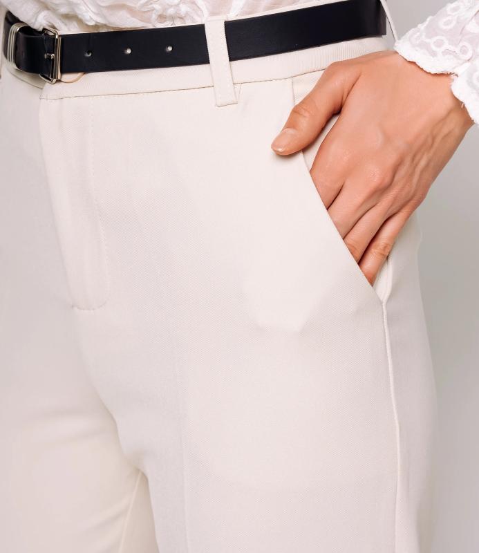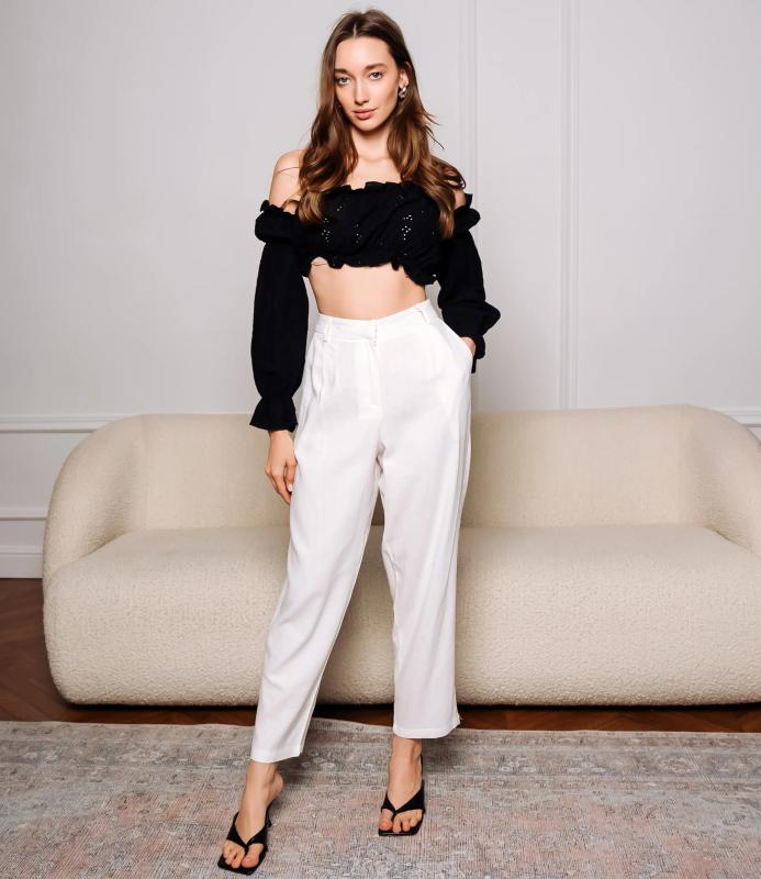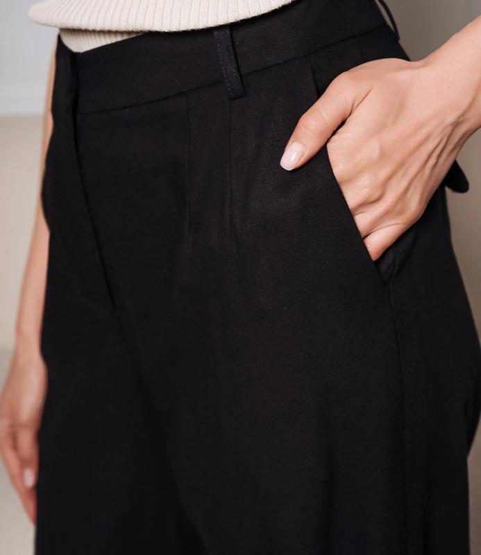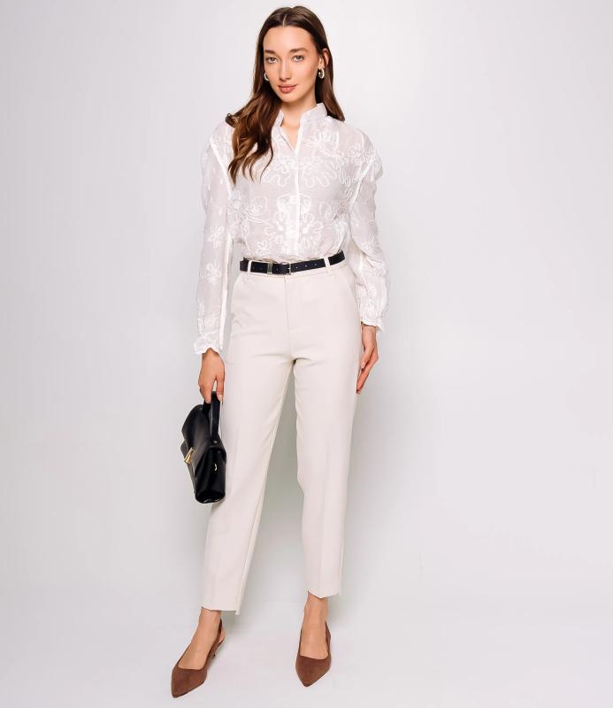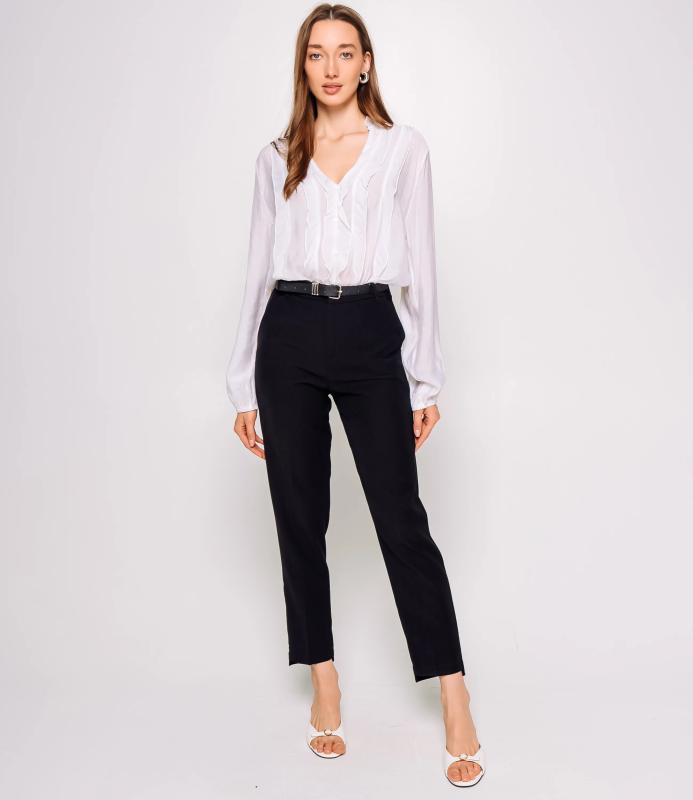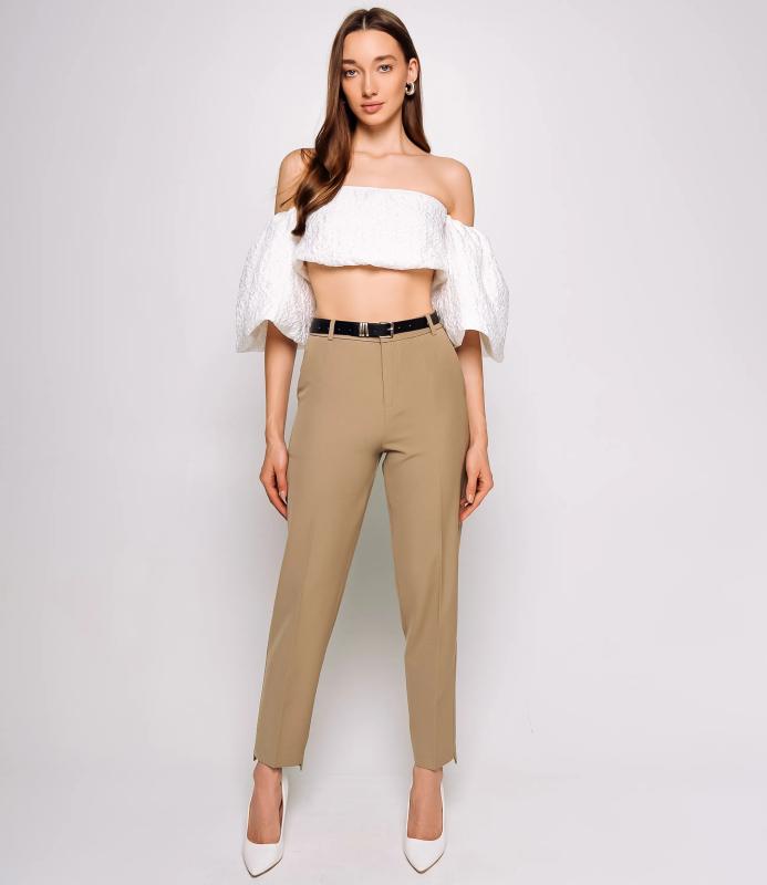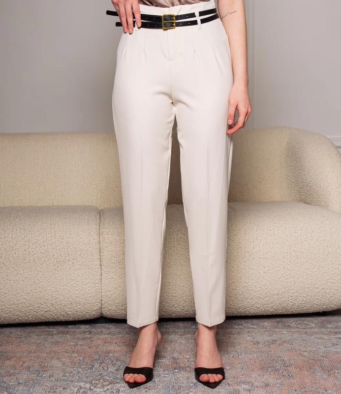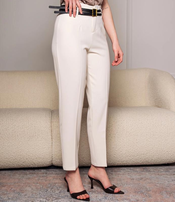 Брюки — это одежда, которая подчеркивает привлекательность любой женщины. Брюки выполнены из лёгкой плотно сотканной ткани с мягкой драпировкой, имеют высокий посад с прилегающей линией талии, оформленной шлевками для ремня и потайной застёжкой спереди