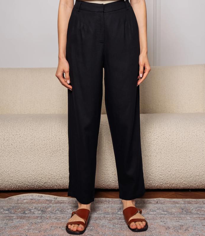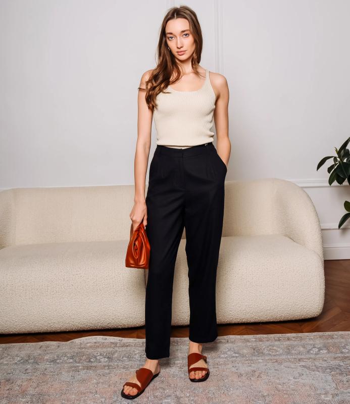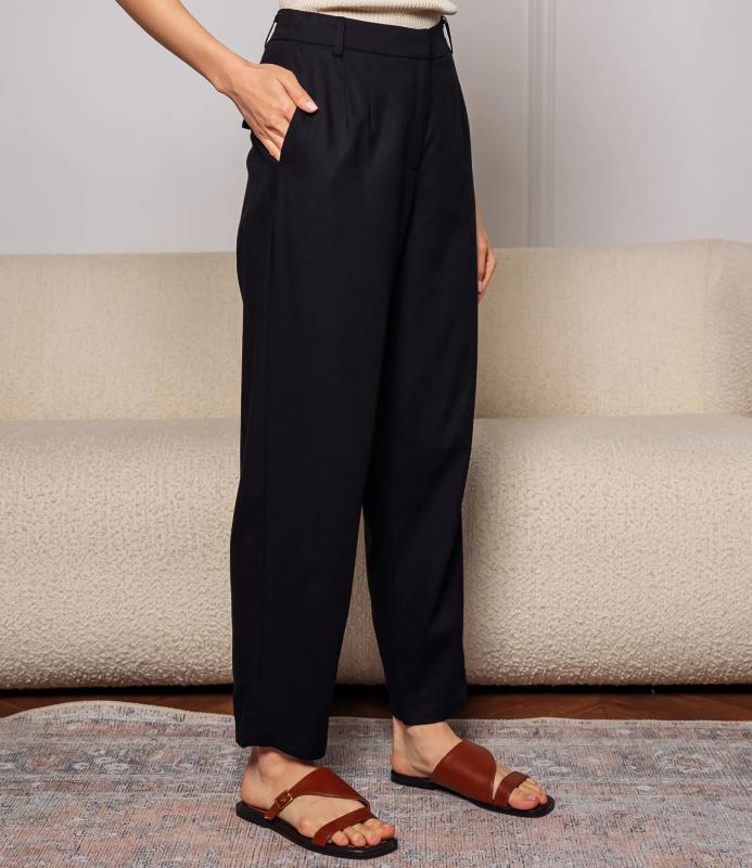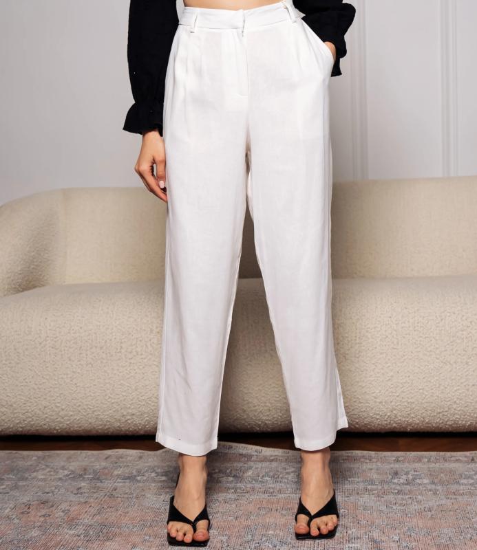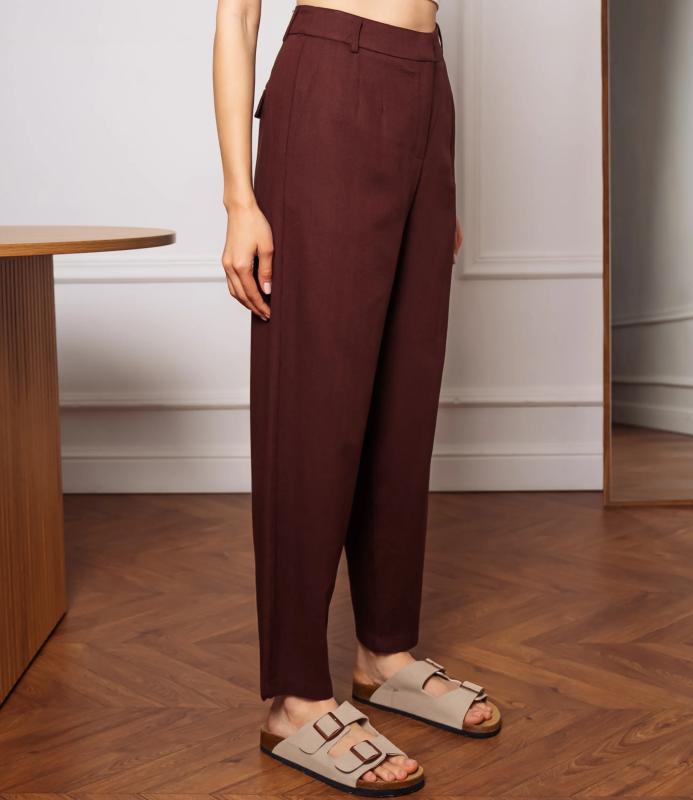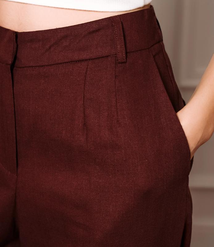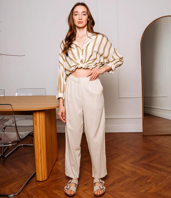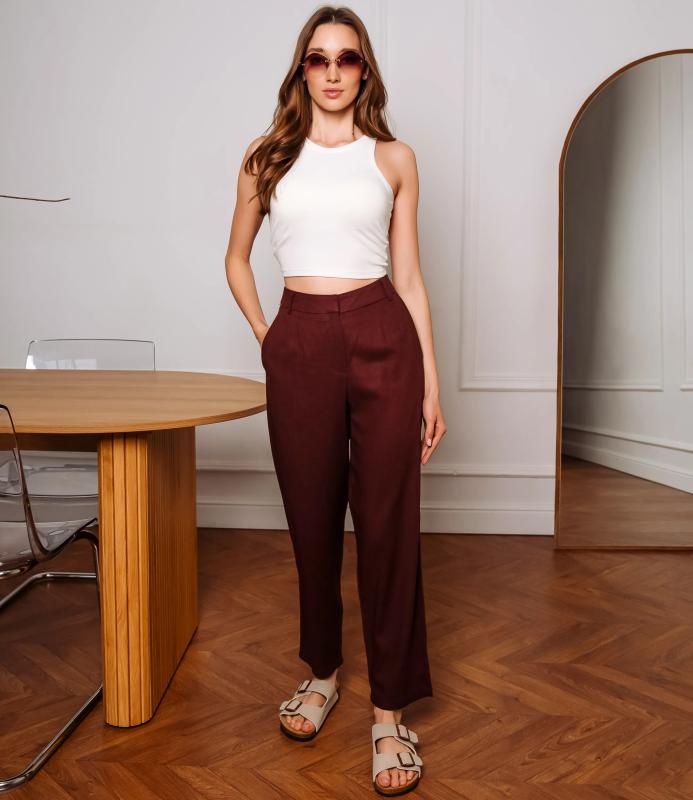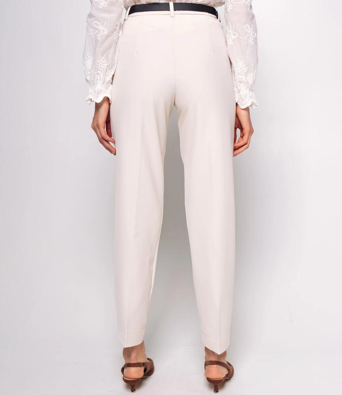 Брюки — это одежда, которая подчеркивает привлекательность любой женщины. Брюки выполнены из лёгкой плотно сотканной ткани с мягкой драпировкой, имеют высокий посад с прилегающей линией талии, оформленной шлевками для ремня и потайной застёжкой спереди