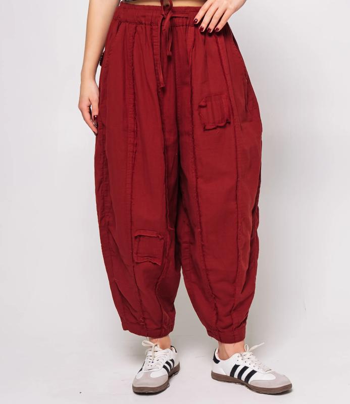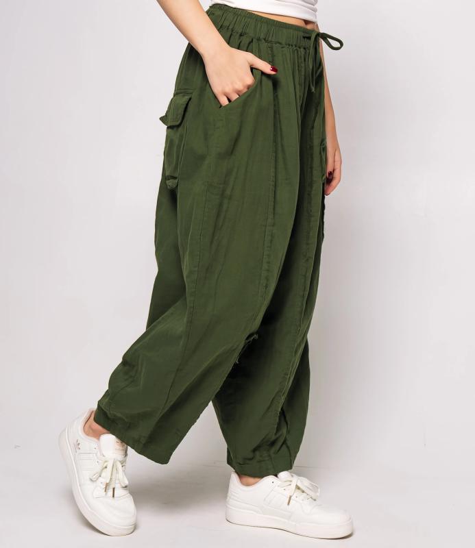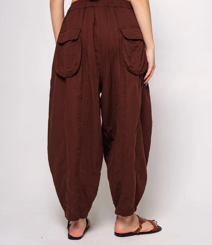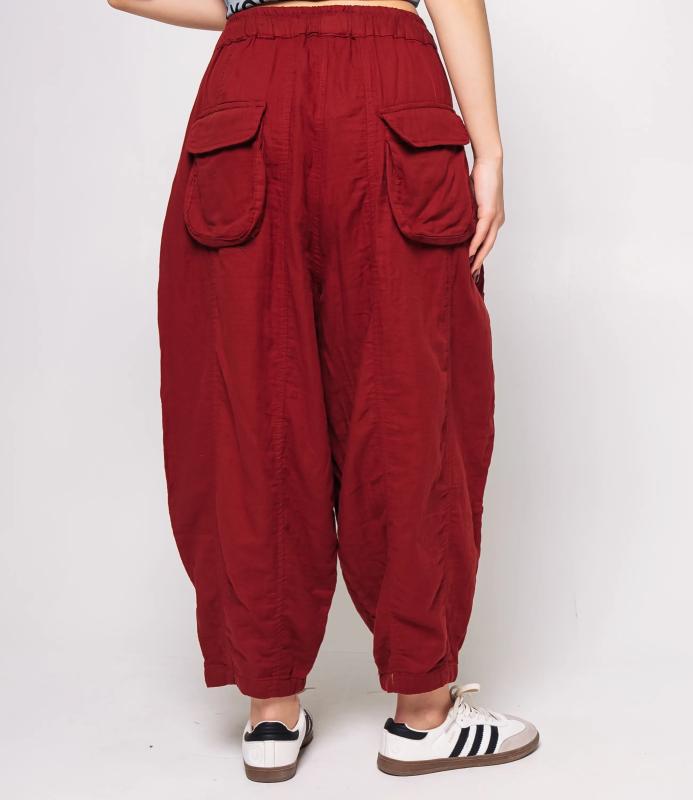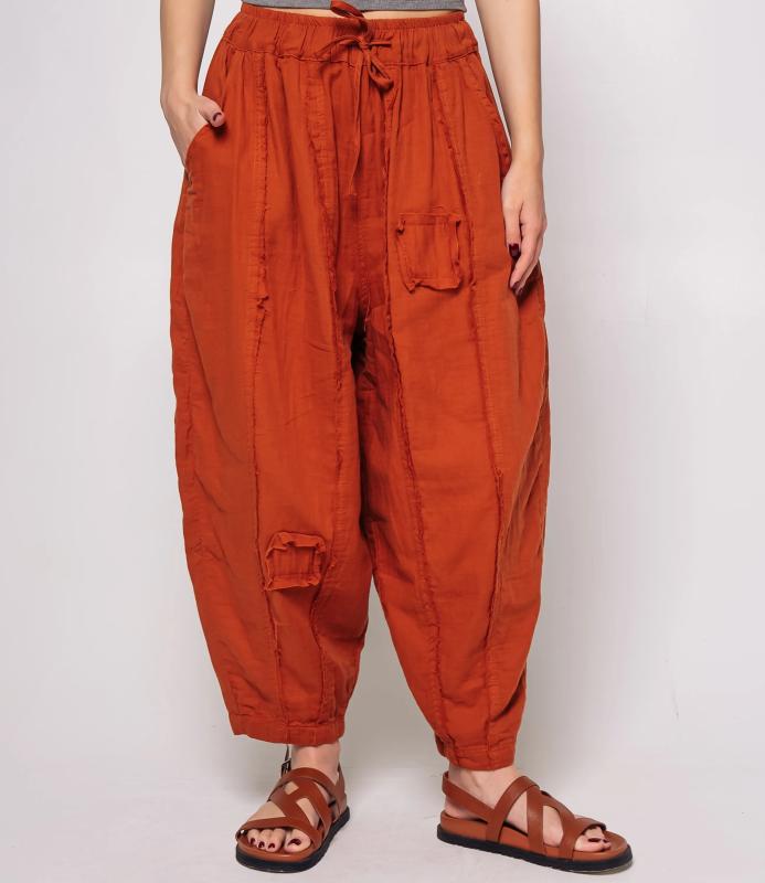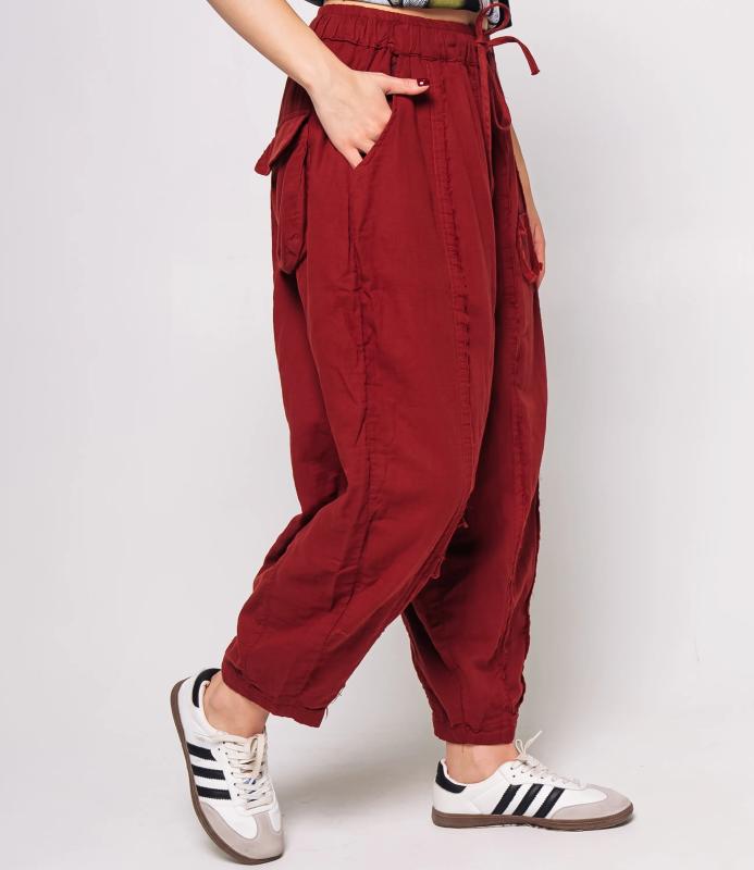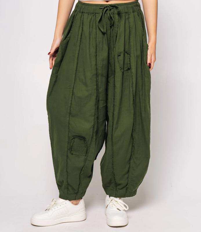 Брюки — это одежда, которая подчеркивает привлекательность любой женщины. Брюки свободного кроя из лёгкой мятой ткани. Эластичный пояс с завязками, широкие штанины с манжетами. Декоративные накладные карманы квадратной формы на бедре и колене. Вертикальные швы по длине. Мягкий материал, не сковывающий движения. Стиль — кэжуал с этническими мотивами. Для пошива использована ткань из 100% хлопок, которая характеризуется отменным качеством. Даже после многократных стирок изделие не утратит первоначальной привлекательности. Вы сможете предлагать их своим покупателям с радостью. Обратите внимание на цвет: он насыщенный и полностью соответствует фотографии на сайте. Чтобы вы были уверены в размере, мы представили на странице таблицу размеров. Воспользовавшись ею, вы сможете сами обмерить себя и удостоверит