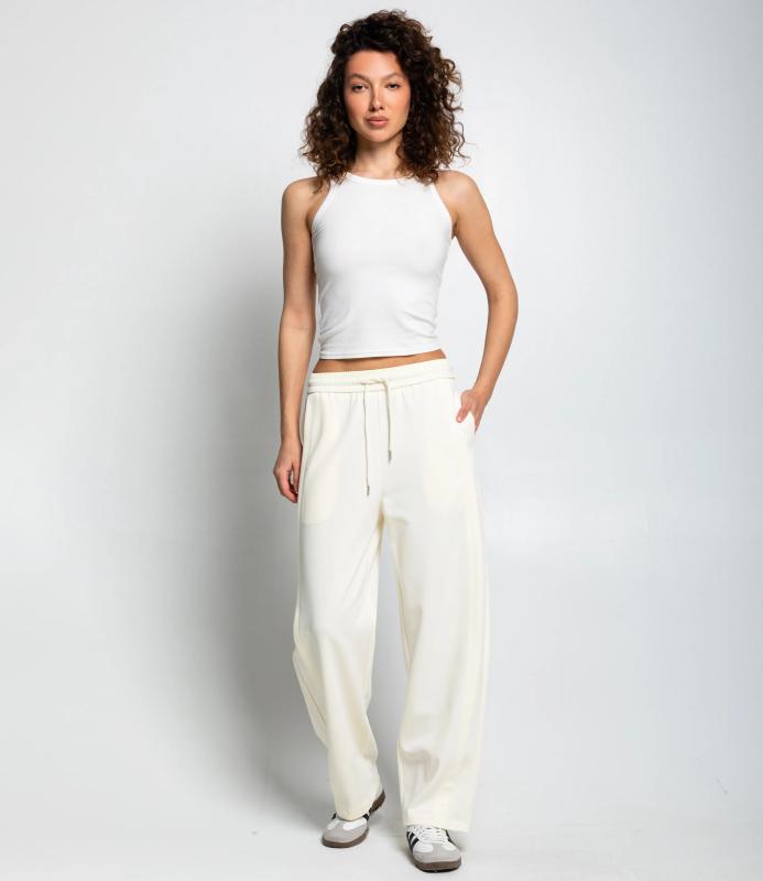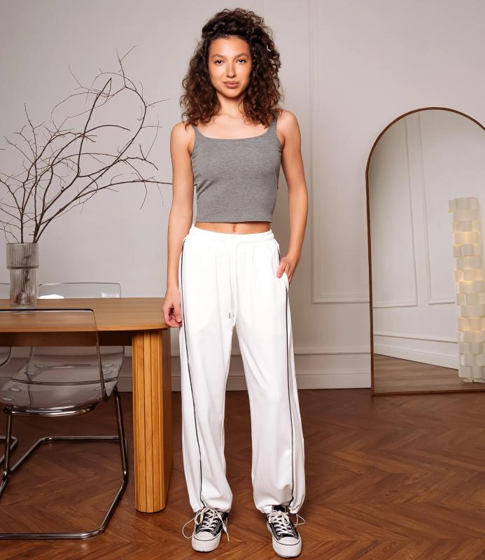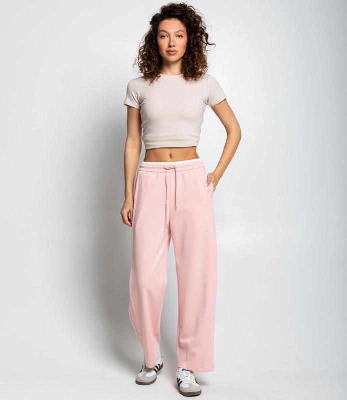 Брюки — это одежда, которая подчеркивает привлекательность любой женщины. Спортивные брюки свободного кроя с высокой посадкой, эластичный пояс со шнурком, прямой фасон с лёгким клёшем к низу, без карманов, лаконичный дизайн, подходят для повседневной носки и спорта. Для пошива использована ткань из 65% хлопок и 35% полиэстер, которая характеризуется отменным качеством. Даже после многократных стирок изделие не утратит первоначальной привлекательности. Вы сможете предлагать их своим покупателям с радостью. Обратите внимание на цвет: он насыщенный и полностью соответствует фотографии на сайте. Чтобы вы были уверены в размере, мы представили на странице таблицу размеров. Воспользовавшись ею, вы сможете сами обмерить себя и удостовериться в правильности выбора. Установленная нами оптовая цена является до