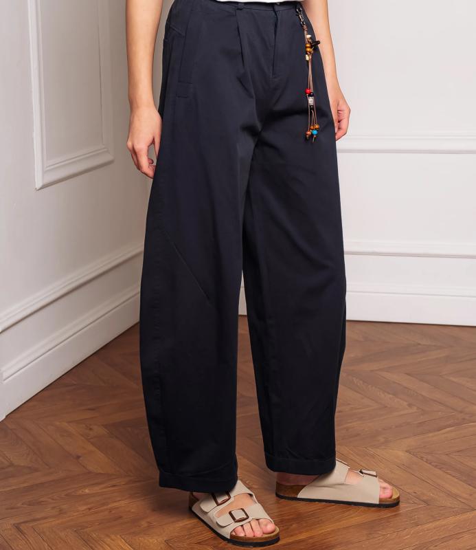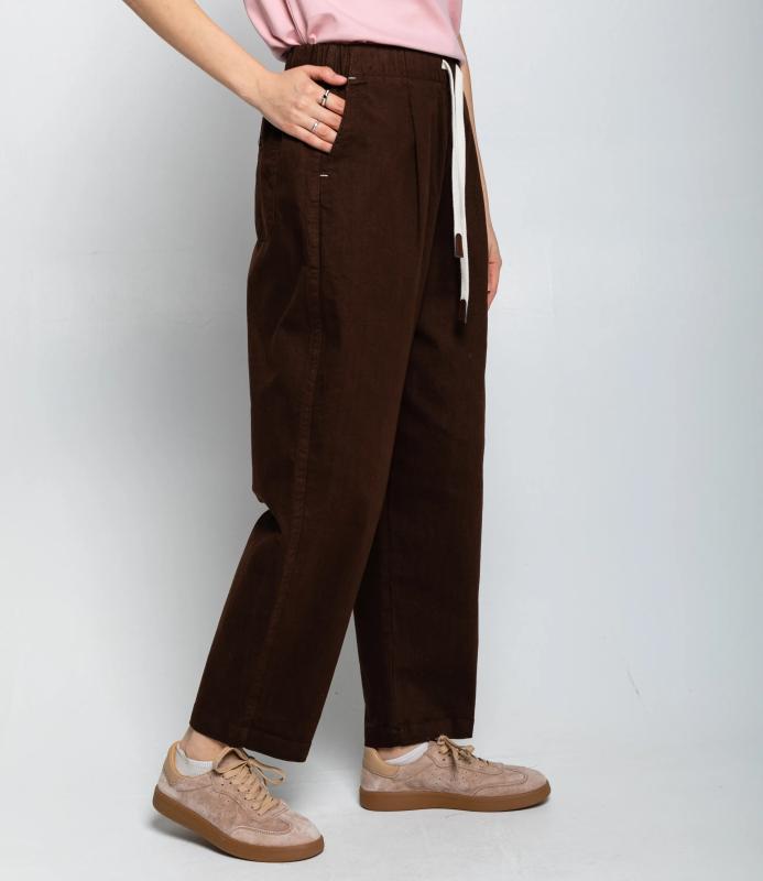 Брюки — это одежда, которая подчеркивает привлекательность любой женщины. Брюки свободного кроя с высокой посадкой. Обладают широким силуэтом, плавно сужающимся к низу, с мягкими складками в области бёдер, придающими объём и расслабленность образу. Пояс оснащён декоративной цепочкой с подвесками, которая добавляет стильный акцент и подчёркивает линию талии. Для пошива использована ткань из 65% хлопок и 35% полиэстер, которая характеризуется отменным качеством. Даже после многократных стирок изделие не утратит первоначальной привлекательности. Вы сможете предлагать их своим покупателям с радостью. Обратите внимание на цвет: он насыщенный и полностью соответствует фотографии на сайте. Чтобы вы были уверены в размере, мы представили на странице таблицу размеров. Воспользовавшись ею, вы сможете сами о