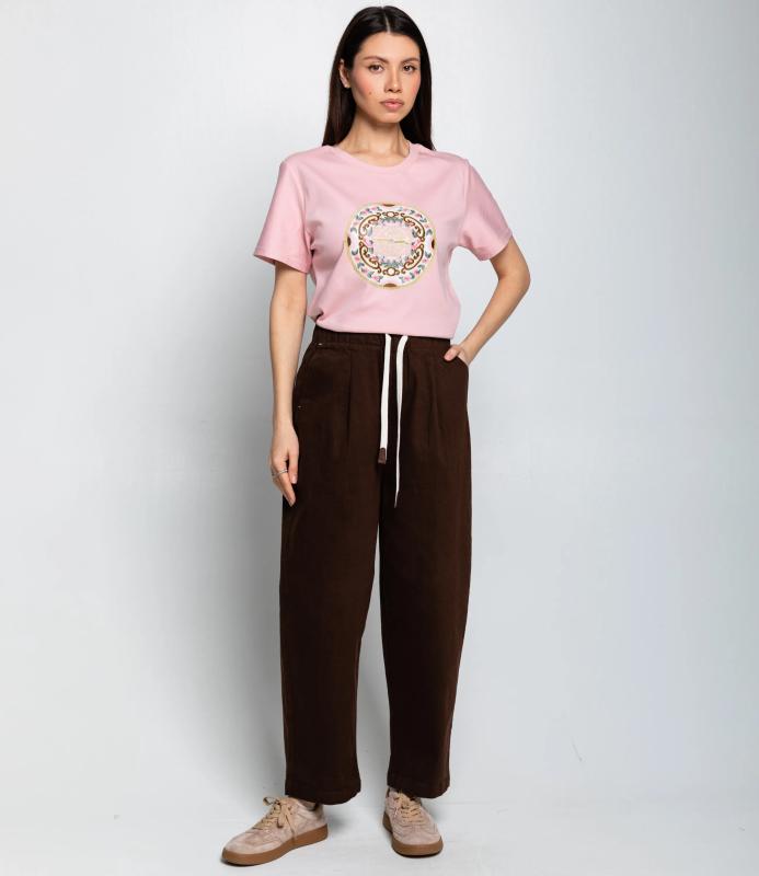 Брюки — это одежда, которая подчеркивает привлекательность любой женщины. Брюки свободного кроя, выполнены из вельветовой ткани с характерной ребристой текстурой. Модель с высокой посадкой, фиксируется на талии с помощью эластичного пояса с вшитым шнурком для дополнительной регулировки. Фасон прямой, слегка расклёшенный к низу. Для пошива использована ткань из 100% хлопок, которая характеризуется отменным качеством. Даже после многократных стирок изделие не утратит первоначальной привлекательности. Вы сможете предлагать их своим покупателям с радостью. Обратите внимание на цвет: он насыщенный и полностью соответствует фотографии на сайте. Чтобы вы были уверены в размере, мы представили на странице таблицу размеров. Воспользовавшись ею, вы сможете сами обмерить себя и удостовериться в правильности в