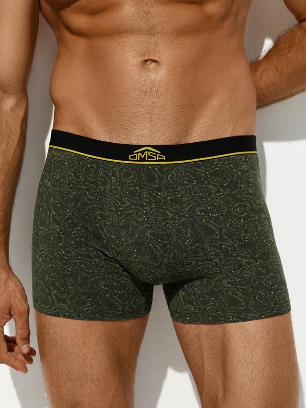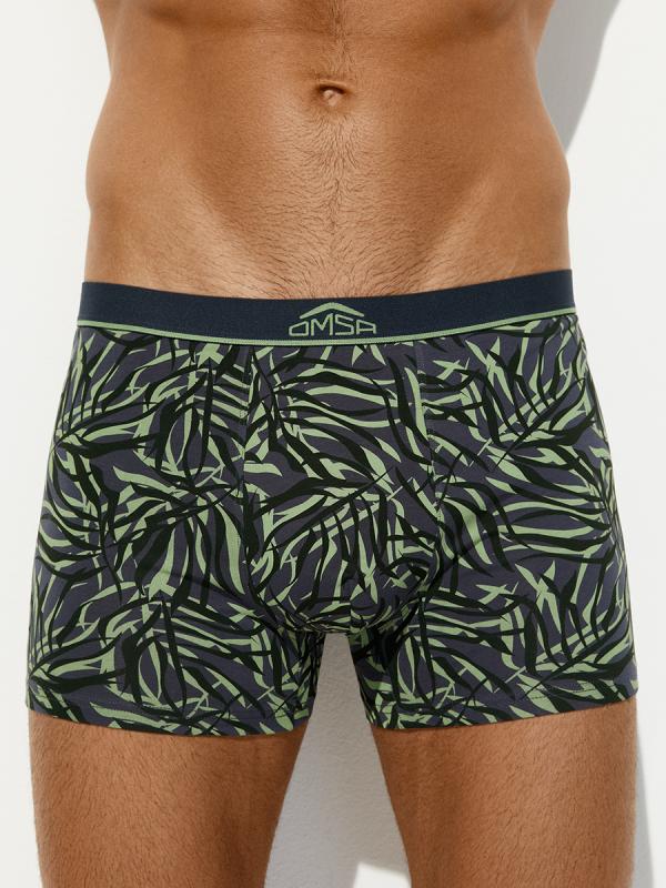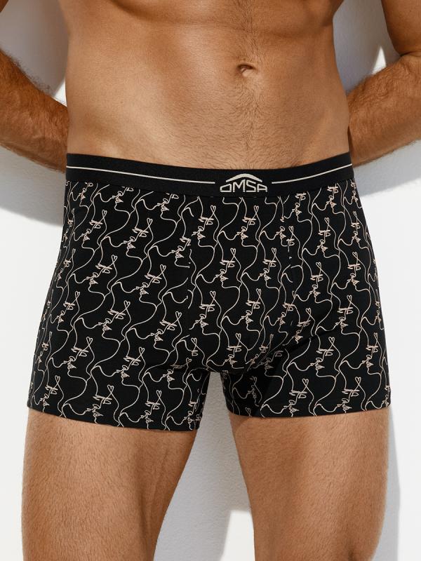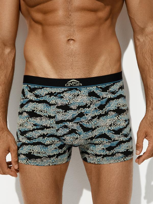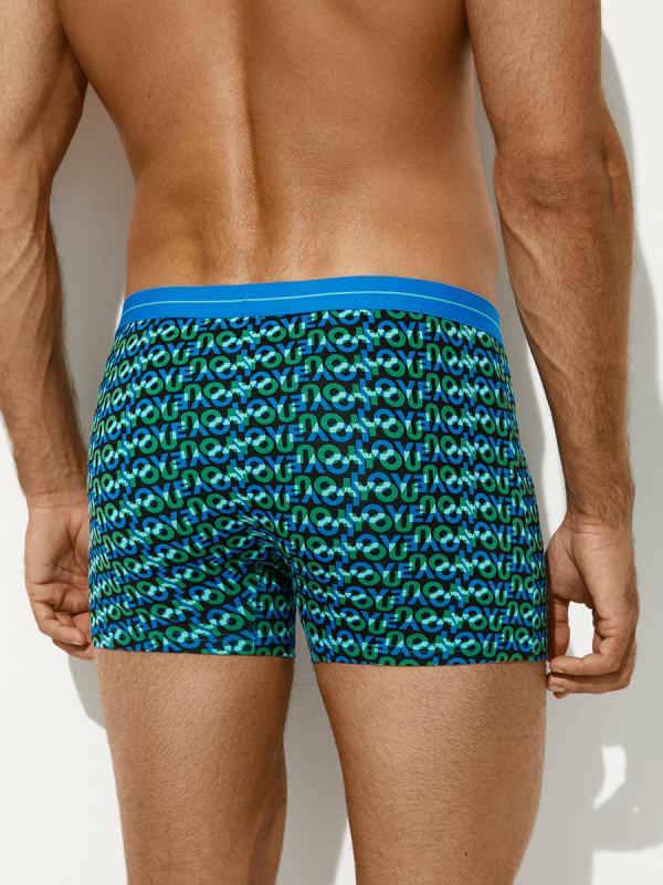 Мужские трусы-боксеры со средней линией талии, открытой брендированной резинкой и фантазийным принтом.