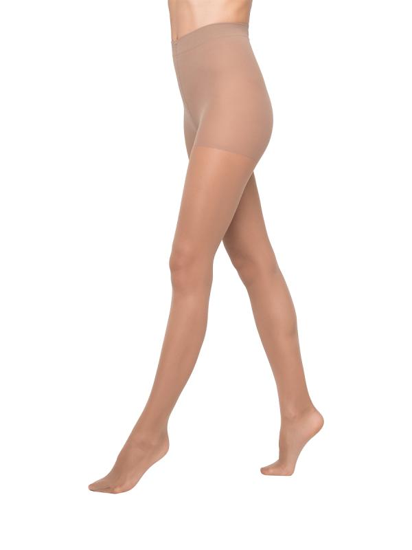 Бесшовный торс мягко адаптируется по фигуре, укреплённый мысок деликатно фиксирует пальцы ног и повышает износостойкость изделия. Удобный пояс и гигиеничная хлопковая ластовица создают дополнительный комфорт.
