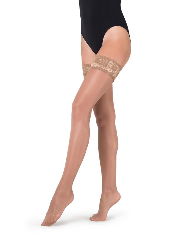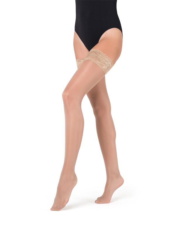 Тонкие чулки с элегантной кружевной резинкой (ширина резинки 8 см) на силиконовой основе и невидимым усиленным мыском. Формованная ступня.