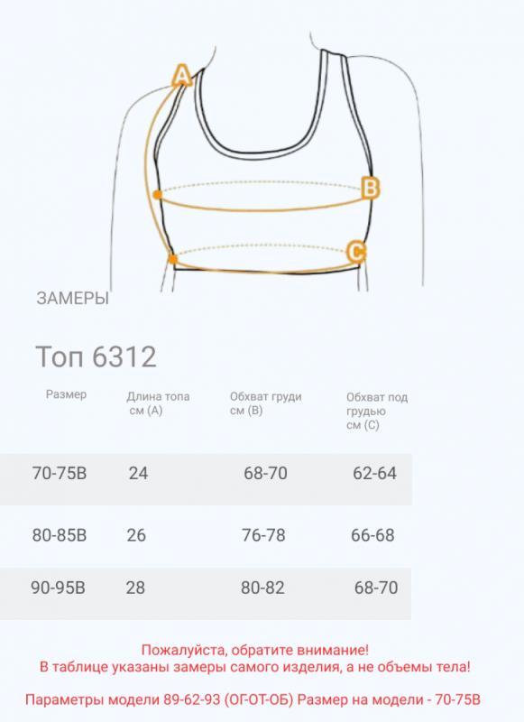 Размерная сетка: ОТ-66-70 ОБ-94-98
