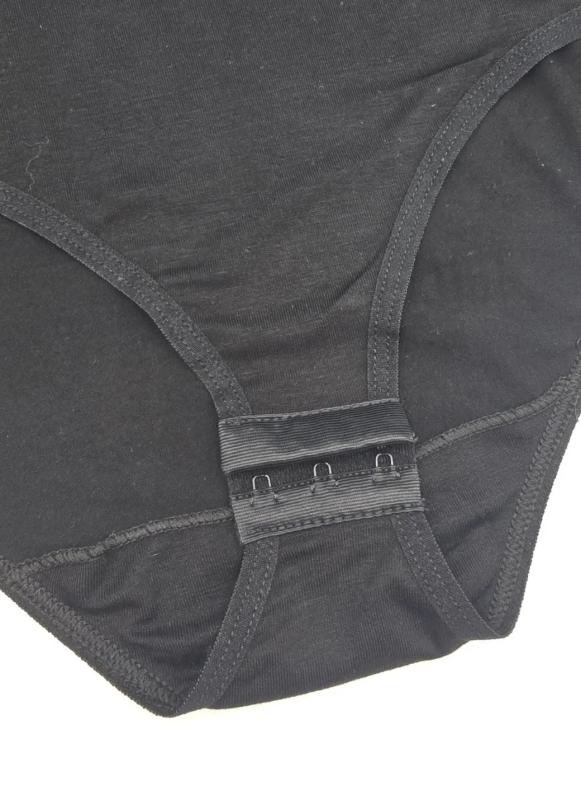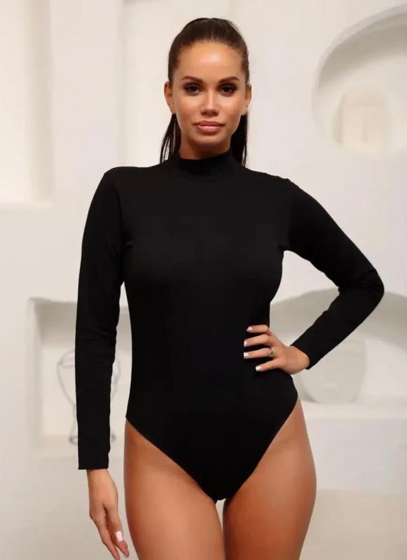 Классическое женское боди Kota черного цвета с длинными рукавами и воротничком-стойкой. Удобное крепление в виде 2 крючков. Боди изготовлено из 93% хлопка и 7% эластана.