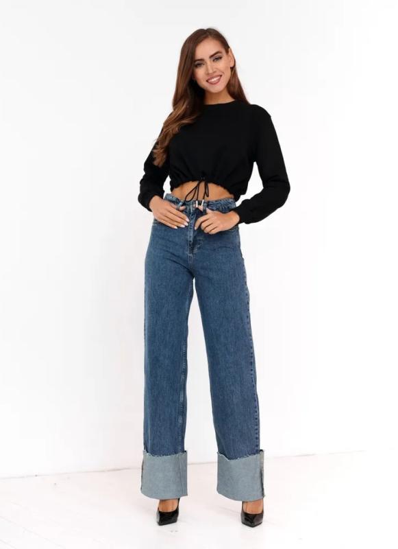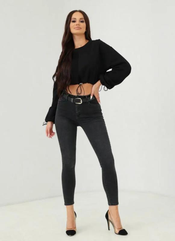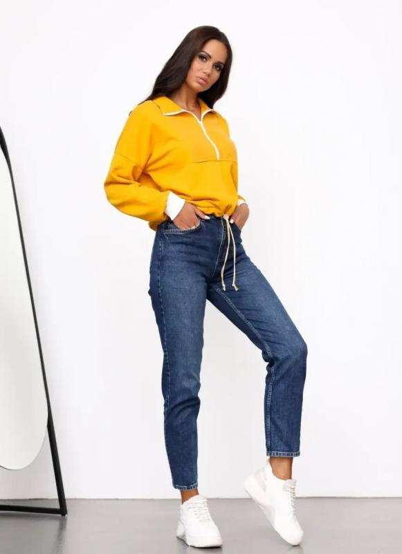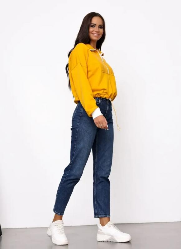 Свитшот женский свободного силуэта из хлопкового футера трехнитки, длиной до линии талии.