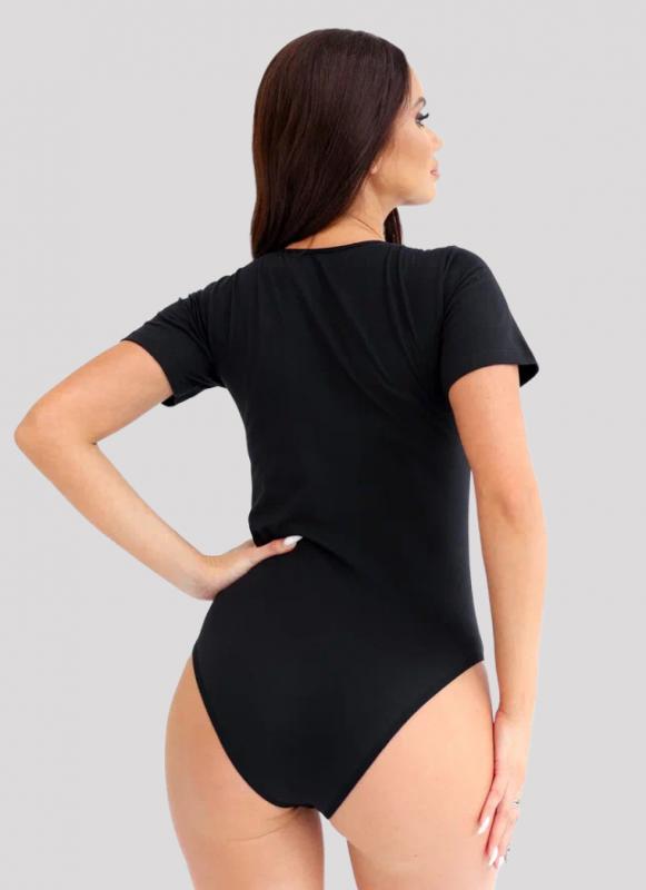 Женское боди Kota черного цвета с коротким рукавом. Застежка на крючках сконструирована таким образом, чтобы Вы не чувствовали ее во время носки. Боди изготовлено из 93% хлопка и 7% эластана.