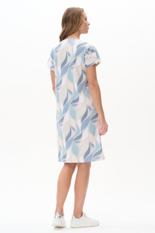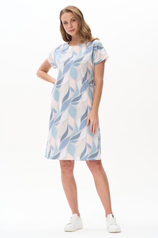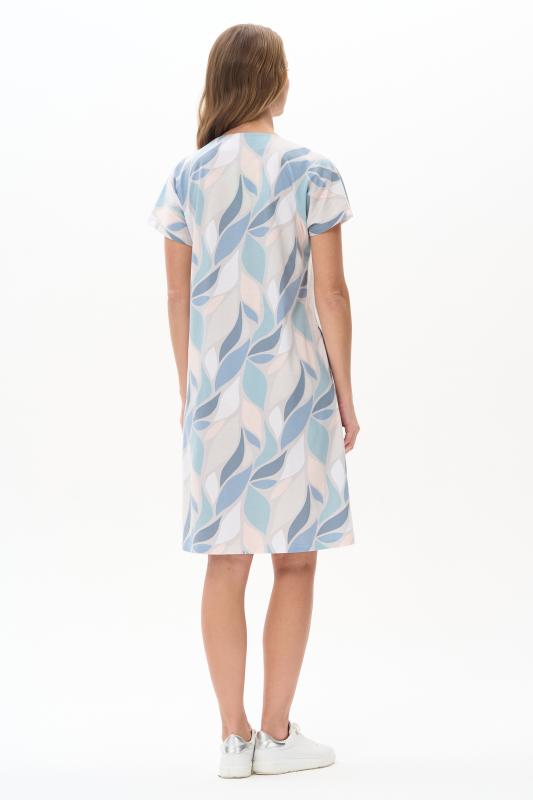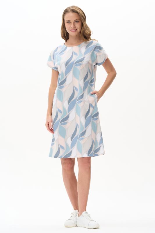 Платье прямого силуэта из кулирки c дизайнерским рисунком - растительная абстракция. Круглый вырез горловины, спущенная линия плеча, цельнокроенные короткие рукава, в боковых швах карманы, длина ниже колена. Эффектная расцветка переводит базовую модель в разряд повседневных и нарядных изделий. Рост модели 175 см;Цвет: мультиколор;Состав: 100% хлопок