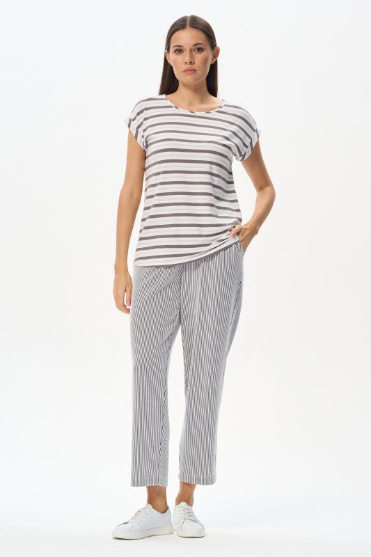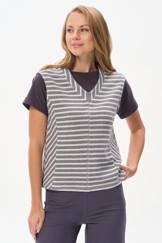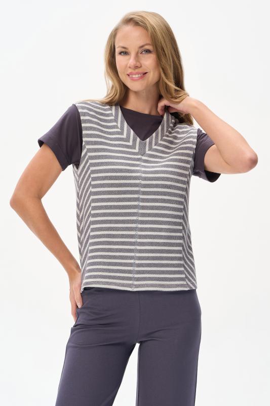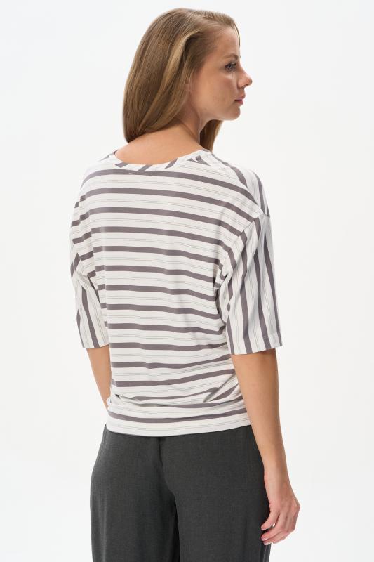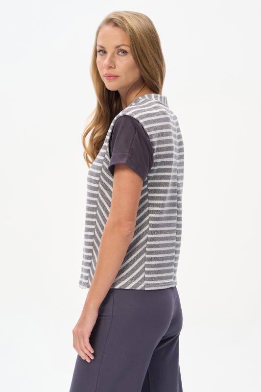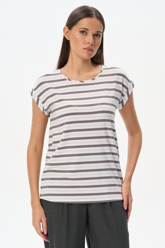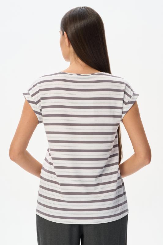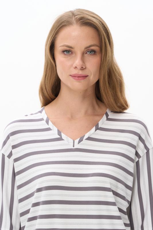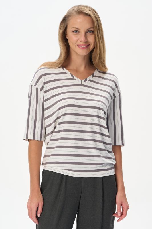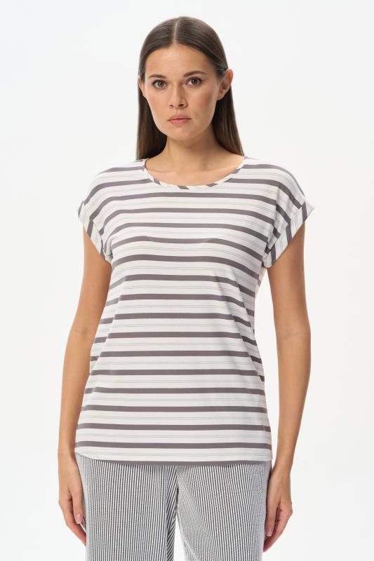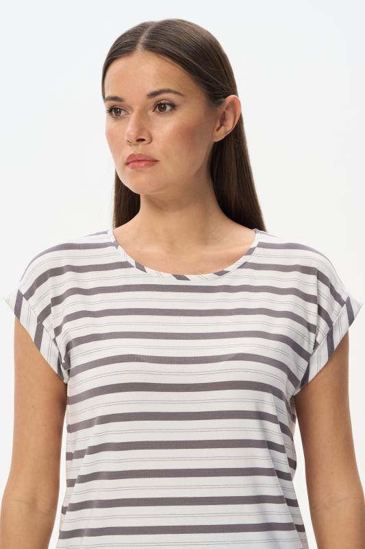 Блузка прямого силуэта из вискозного полотна в полоску. Модель со спущеной линией плеча, цельнокроеные короткие рукава с зафиксированными подворотами, круглый вырез горловины, длиной чуть ниже середины бедер. Универсальная, комфортная модель на любой случай. Рост модели 175 см.;Цвет: серый;Состав: 92% вискоза, 8% эластан
