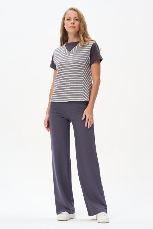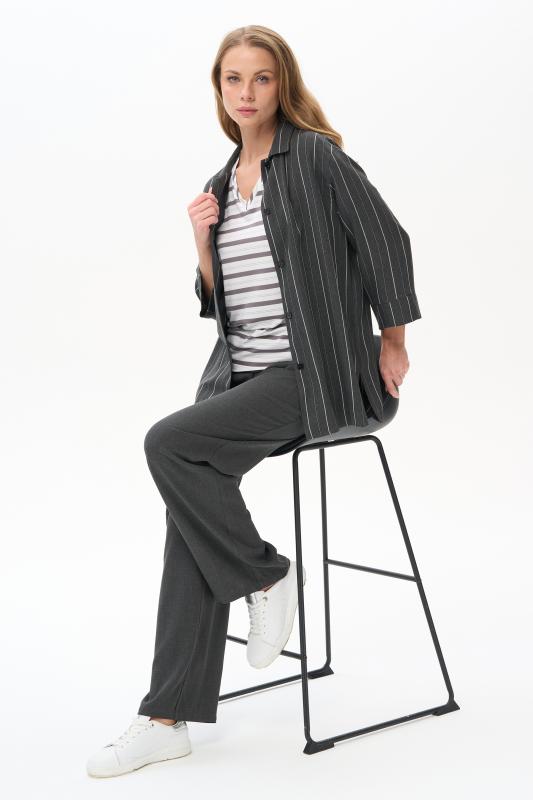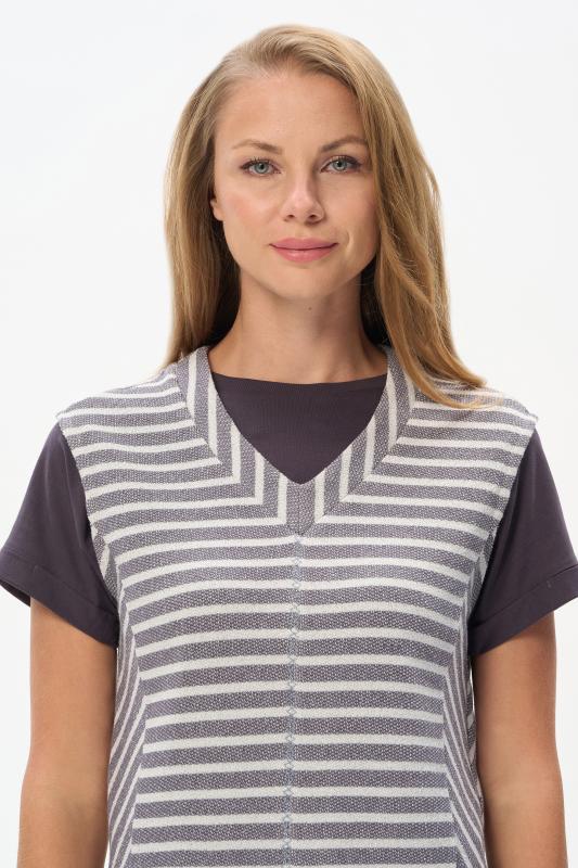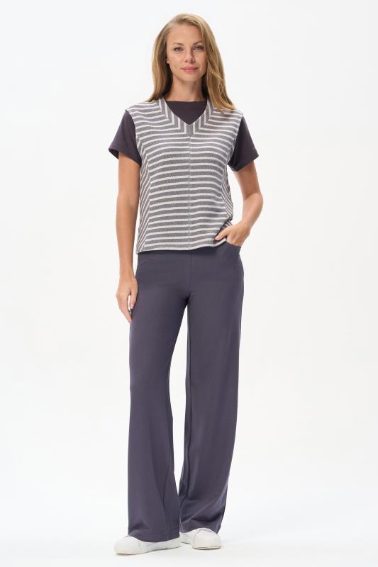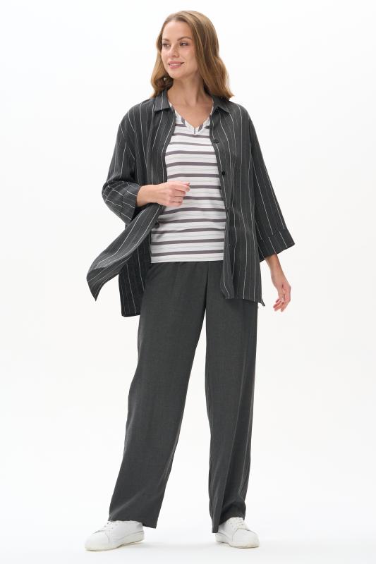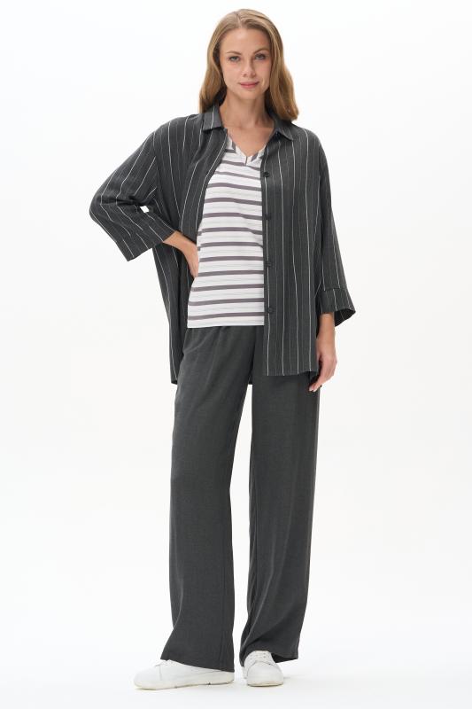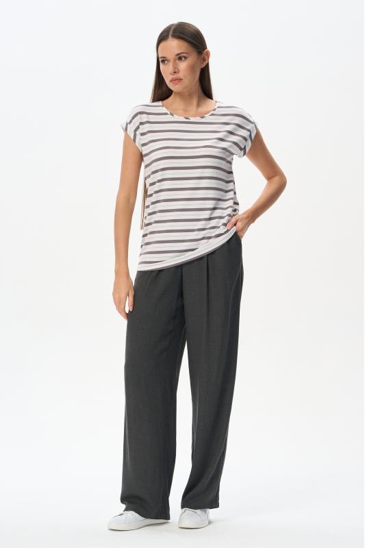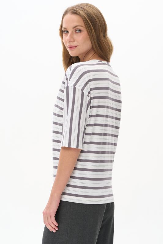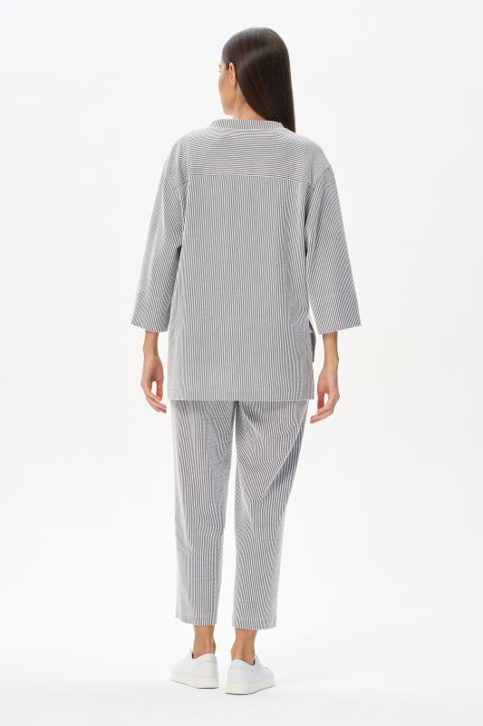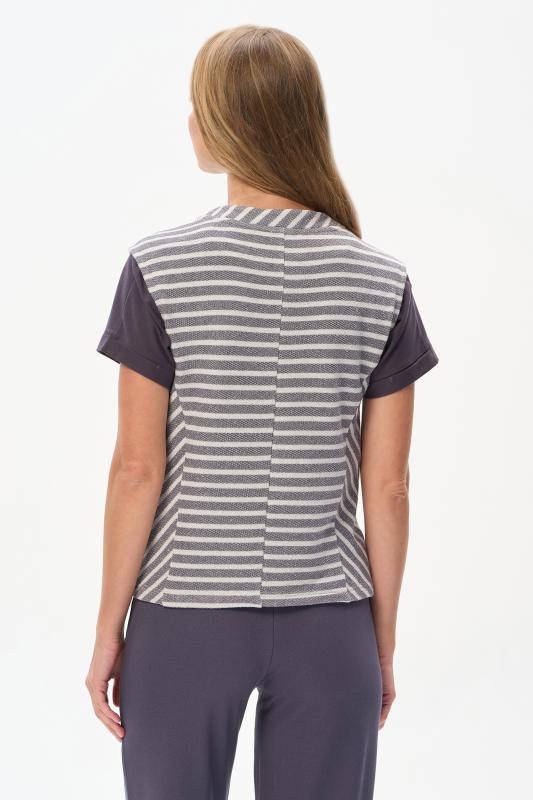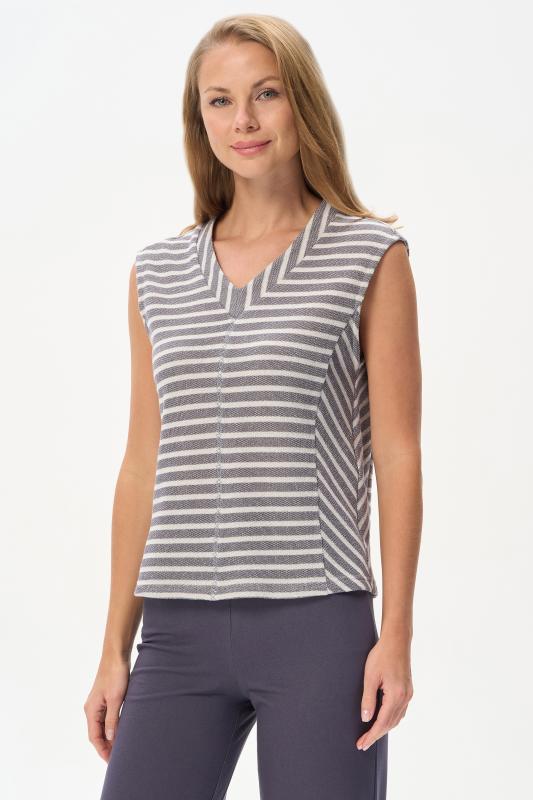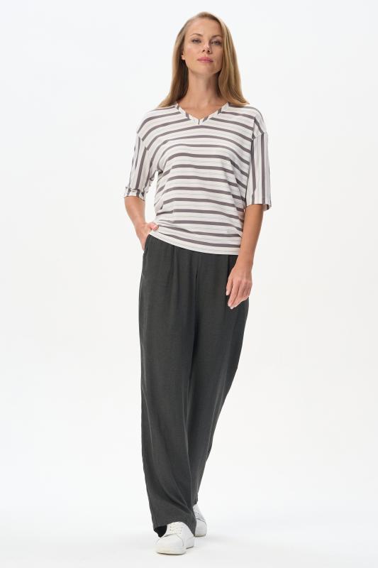 Блузка прямого силуэта из вискозного полотна в полоску. Модель со спущеной линией плеча, цельнокроеные короткие рукава с зафиксированными подворотами, круглый вырез горловины, длиной чуть ниже середины бедер. Универсальная, комфортная модель на любой случай. Рост модели 175 см.;Цвет: серый;Состав: 92% вискоза, 8% эластан
