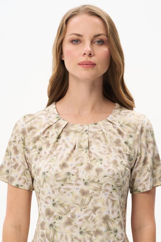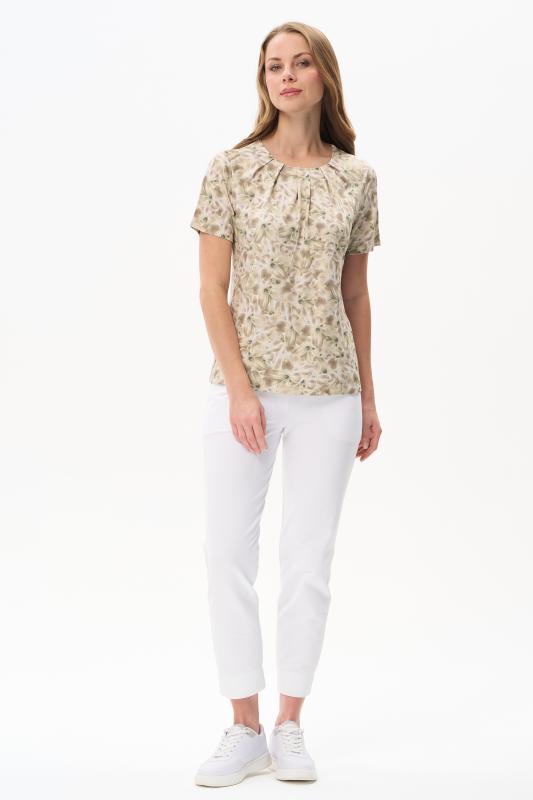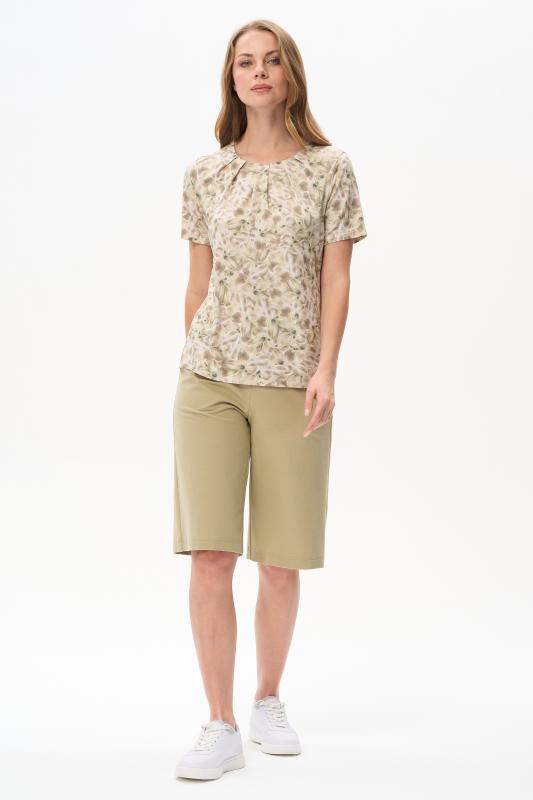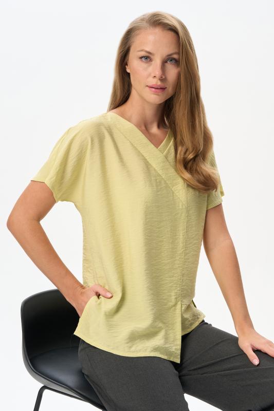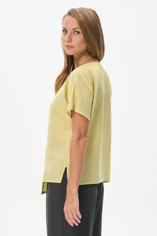 Блузка из вискозного полотна. Модель с округлой горловиной и мягкими складками. Втачные короткие рукава. Рост модели 175 см.;Цвет: светло-зеленый;Состав: 92% вискоза, 8% эластан
