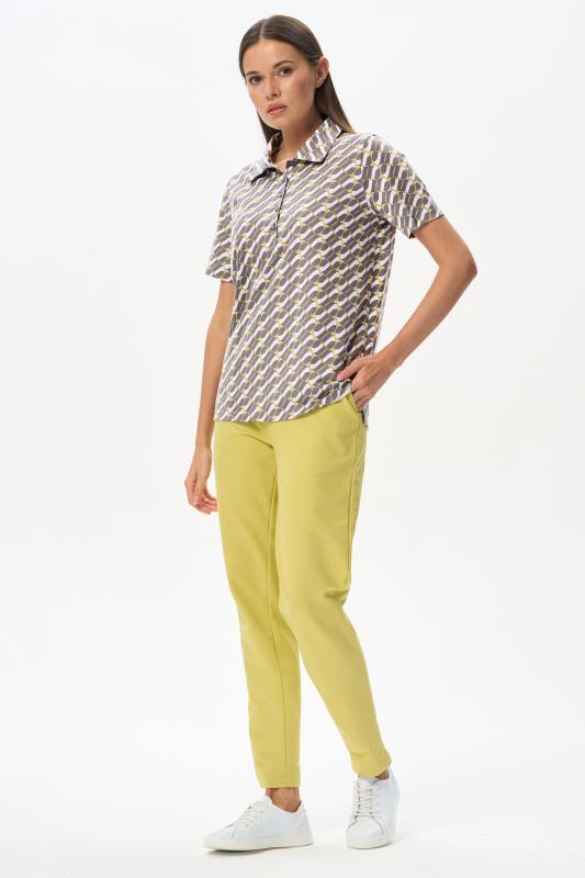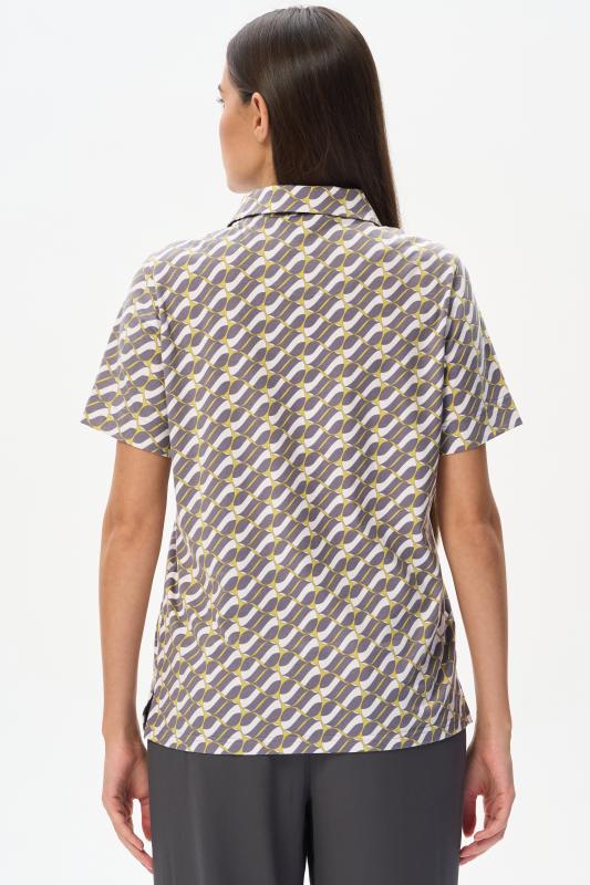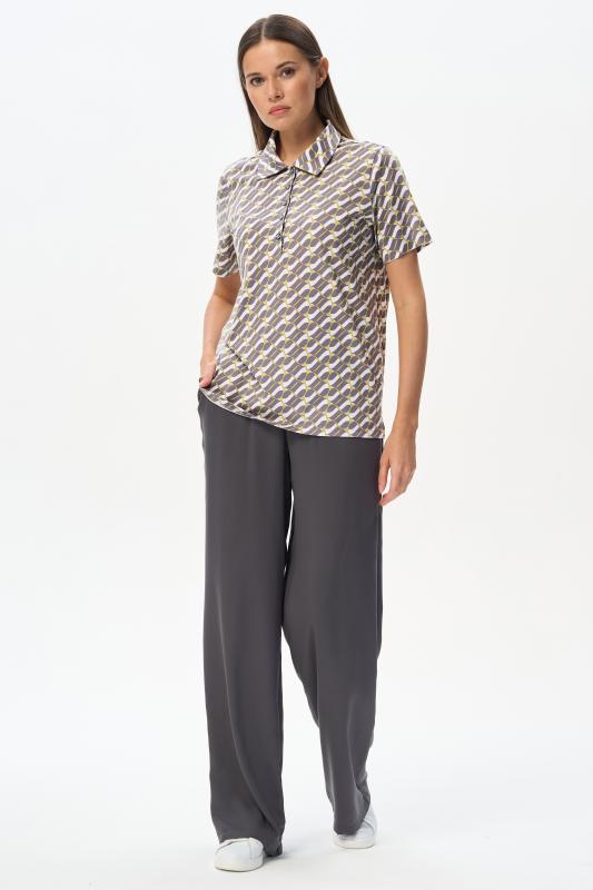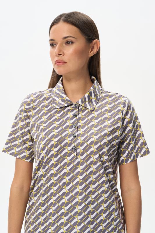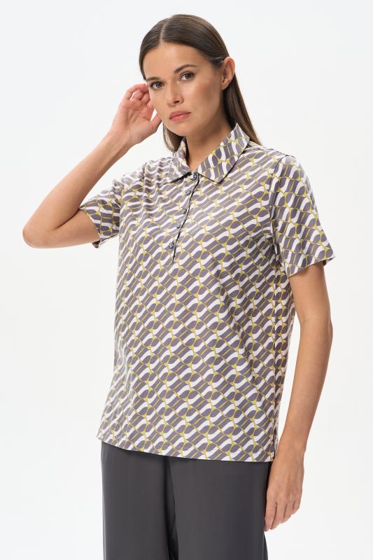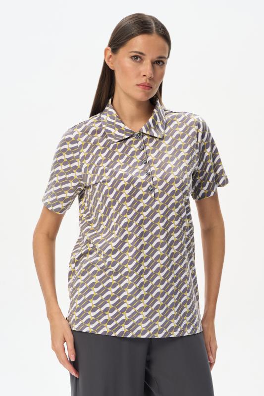 Джемпер-поло из кулирки c авторским дизайнерским рисунком. Модель с классическим оформлением горловины - воротник-поло и застежка на пуговицы, рукава короткие, по бокам разрезы. Лёгкий, комфортный, универсальный джемпер для офиса и отдыха. Идеальный партнер как для серых, так и для ярких желтых брюк в нашей коллекции. Рост модели 175 см;Цвет: серый;Состав: 100% хлопок