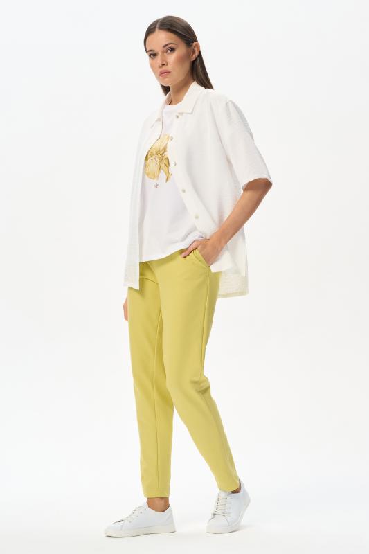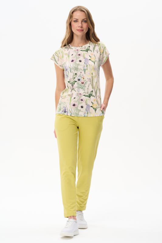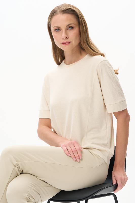 Футболка прямого силуэта из вискозного трикотажного полотна с эластаном. Круглый вырез горловины, цельнокроеные короткие рукава. Рост модели 175 см.;Цвет: светло-желтый;Состав: 92% вискоза, 8% эластан