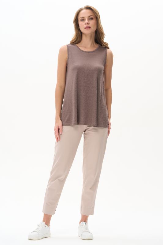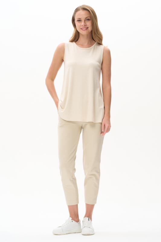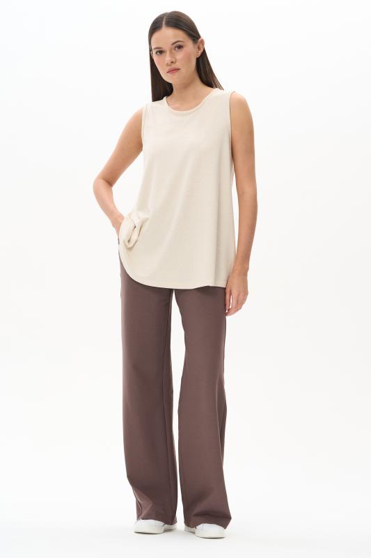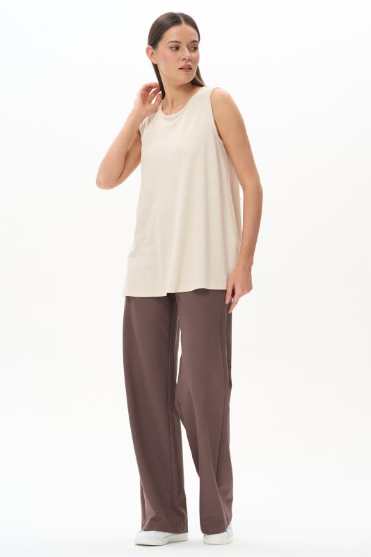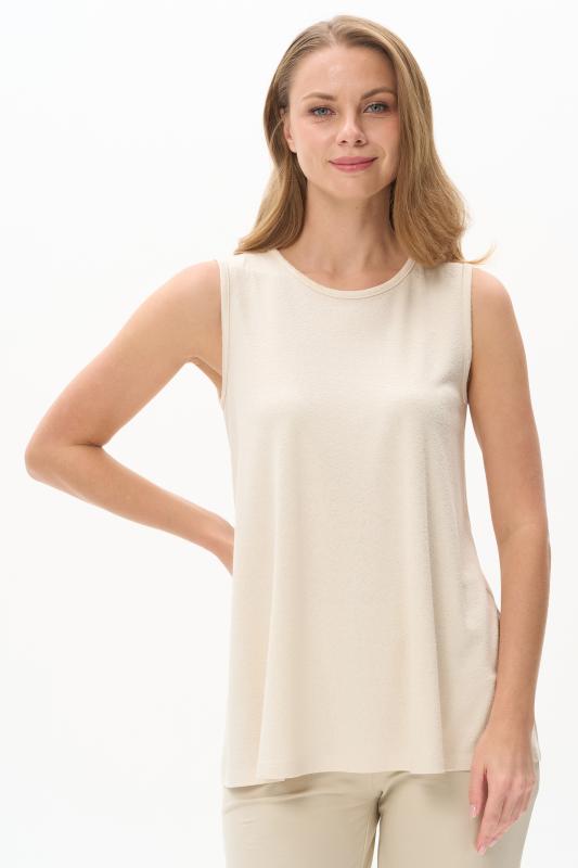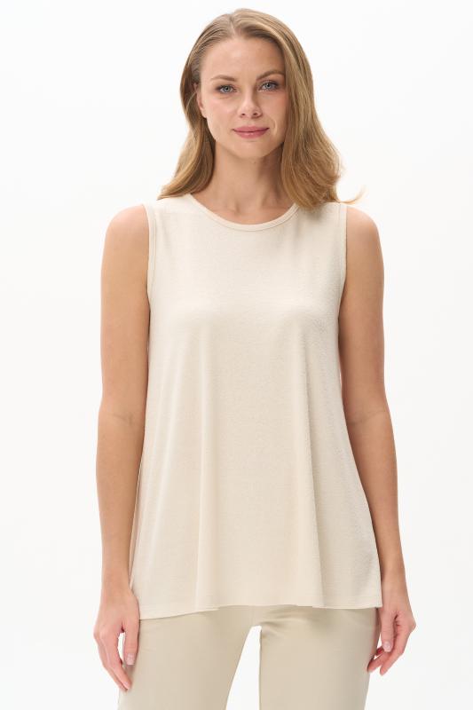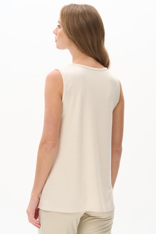 Топ из вискозного жаккардового трикотажного полотна. Круглый вырез горловины, без рукавов. Рост модели 175 см.;Цвет: экрю;Состав: 80% вискоза, 15% полиэстер, 5% эластан