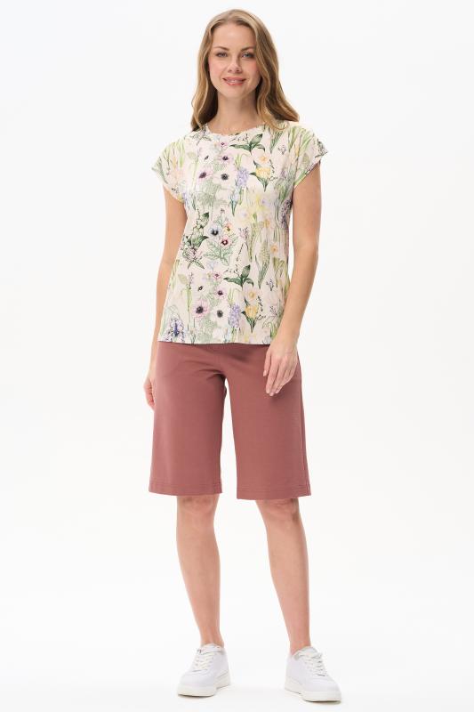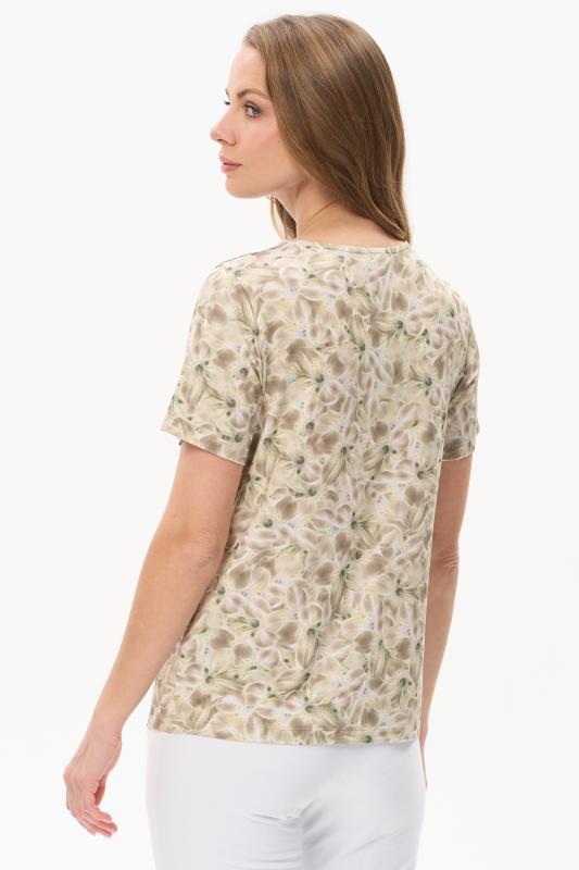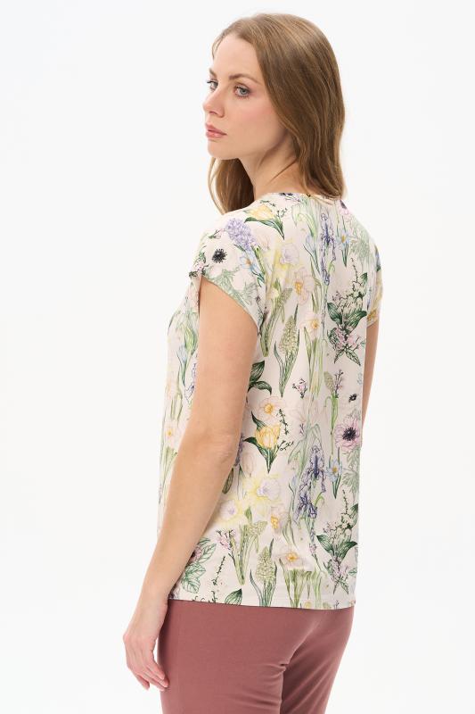 Футболка прямого силуэта из вискозного трикотажного полотна с эластаном. Круглый вырез горловины, цельнокроеные короткие рукава. Рост модели 175 см.;Цвет: мультиколор;Состав: 92% вискоза, 8% эластан