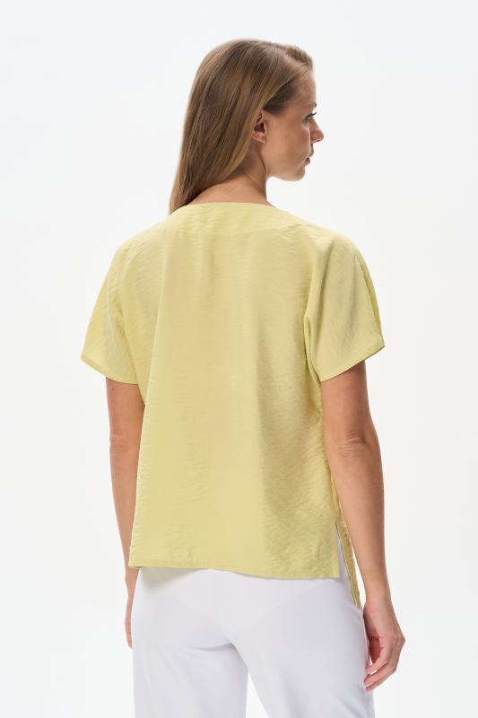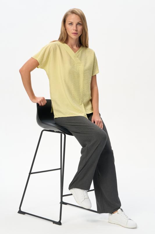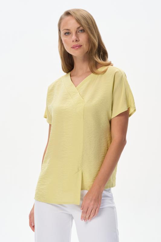 Блузка из лёгкой плательной ткани 120 гр в трендовом оттенке. Модель с V-образным вырезом горловины, спущенными рукавами, выглядит нарядно не только благодаря цвету, но и модному асимметричному крою. Лёгкая, свободная, комфортная блузка для повседневных и нарядных образов. Рост модели 175 см;Цвет: жёлтый;Состав: 88% вискоза, 12% полиэстер