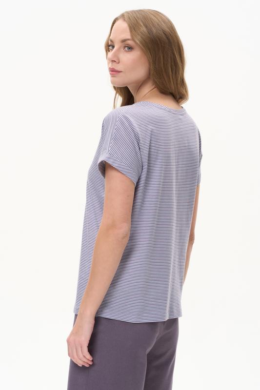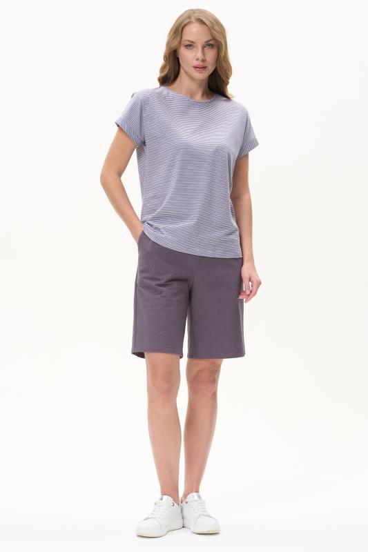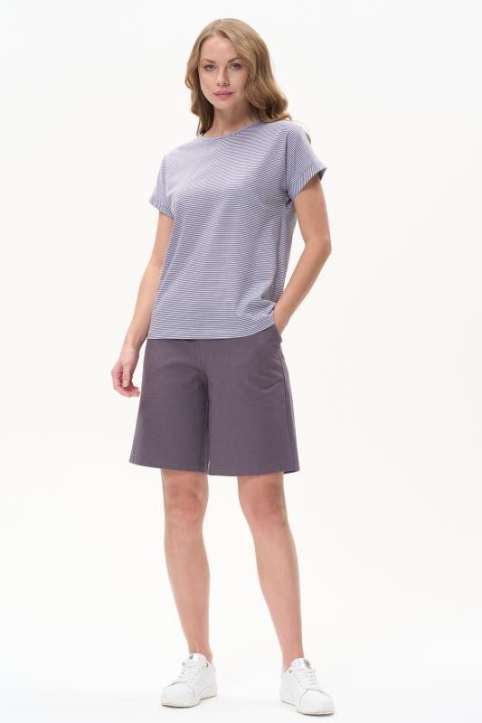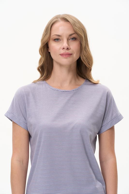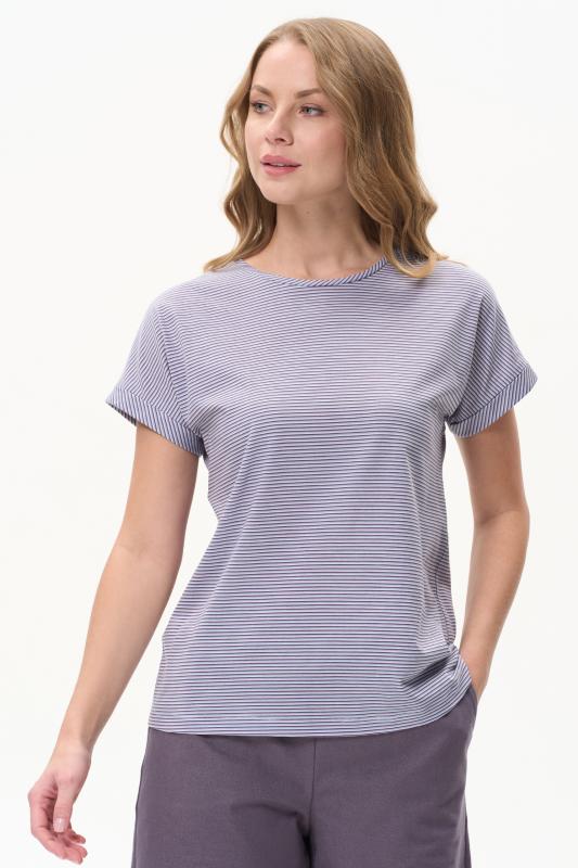 Повседневная базовая футболка в тонкую полоску в оттенках коллекции из хлопкового полотна качества пенье 150 гр. Модель с круглым вырезом горловины и цельнокроеными короткими рукавами с подворотом. Рост модели 175 см;Цвет: серо-голубой;Состав: 100% хлопок