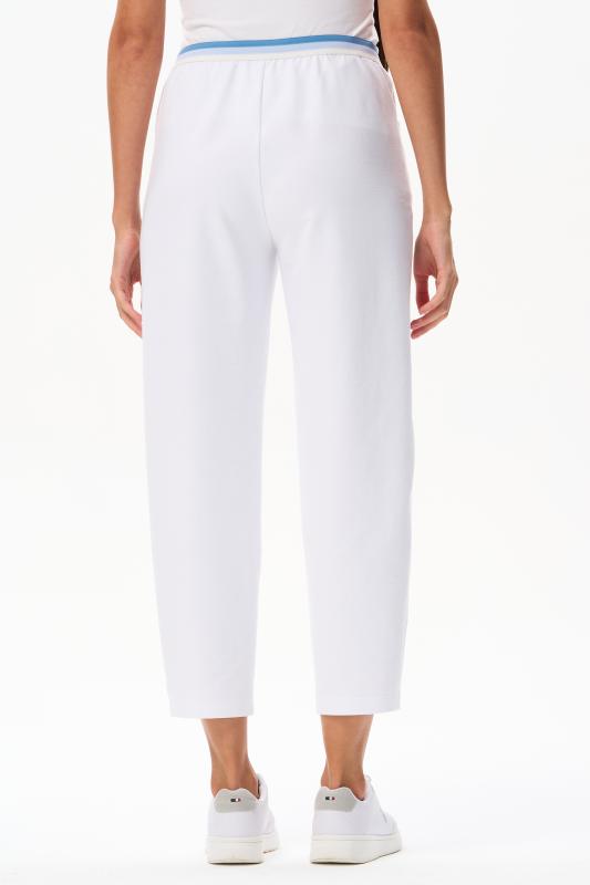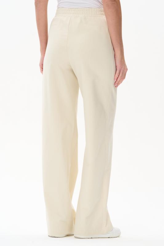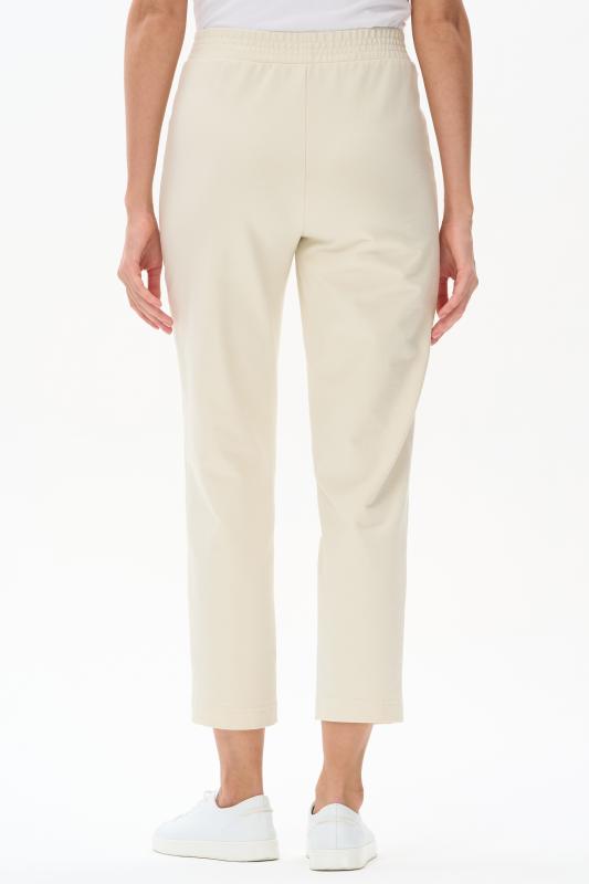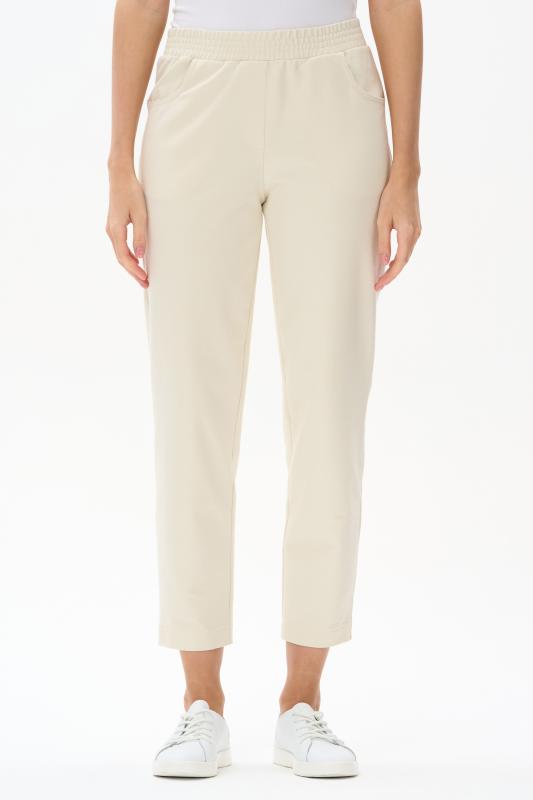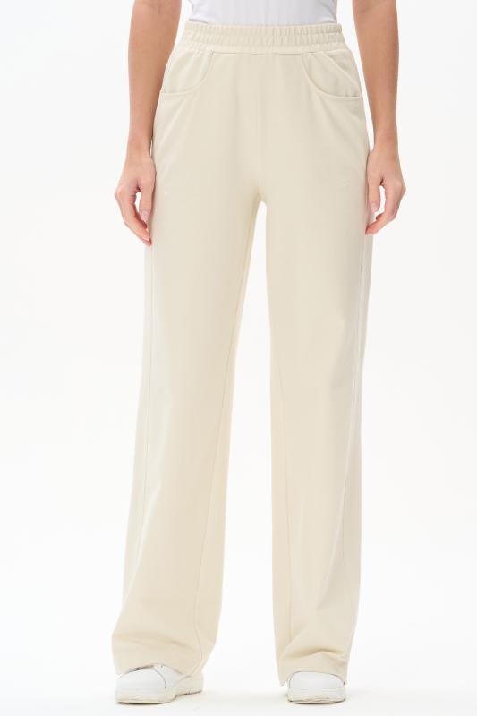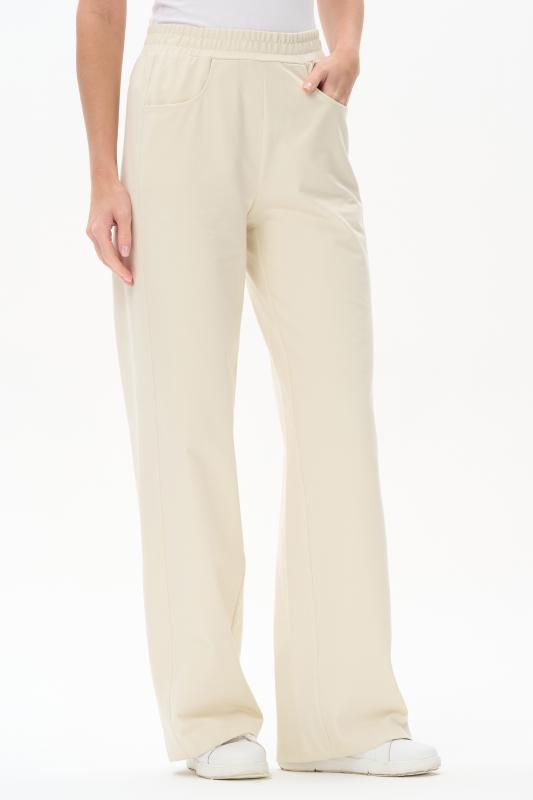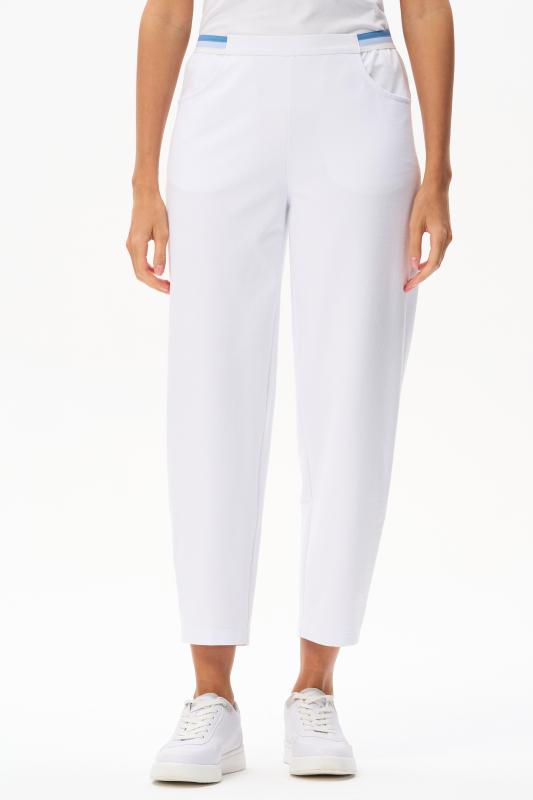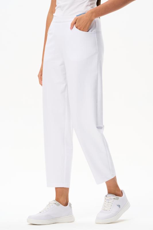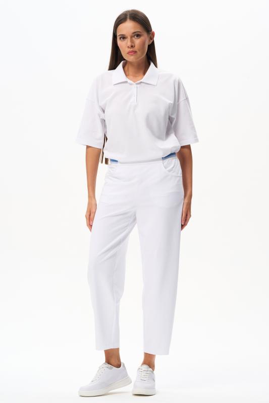 Брюки свободные из хлопкового джинскота качества ПЕ 240 гр в чистом белом оттенке. Модель в новой трендовом силуэте, с фигурными карманами, пояс с мягкой декоративной резинкой. Комфортная модель для отдыха, прогулок и путешествий. Зауженные к низу и чуть укороченные, эта модель - идельный союзник для всех верхов в коллекции "Дельфиниум". Рост модели 175 см.;Цвет: белый;Состав: 80% хлопок, 14% полиэстер, 6% эластан