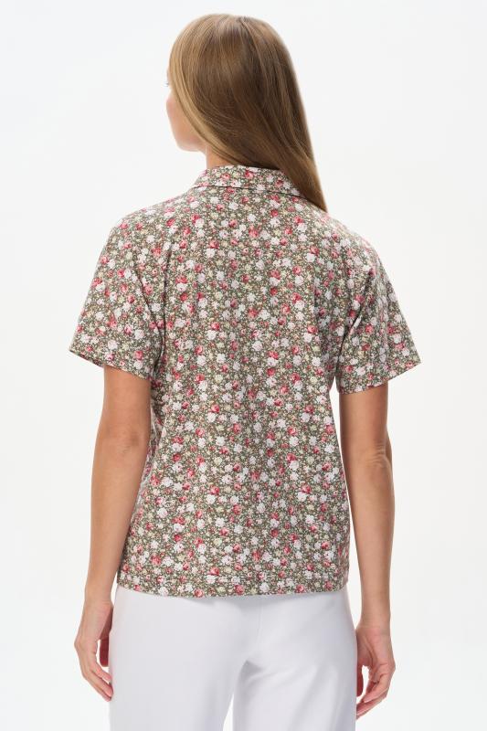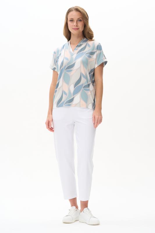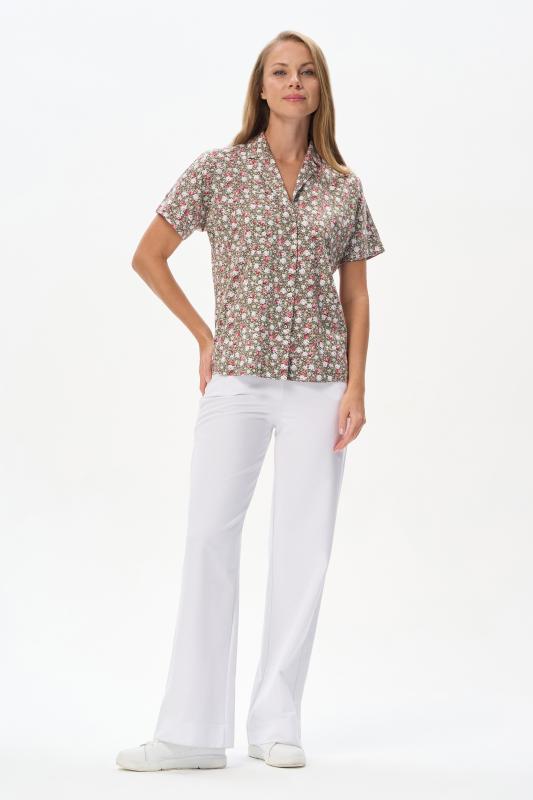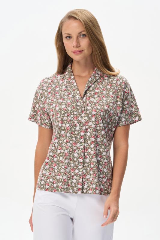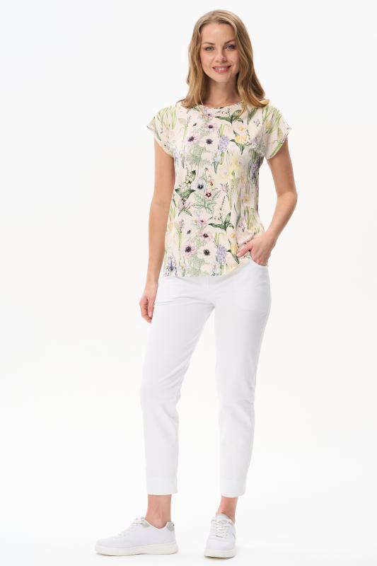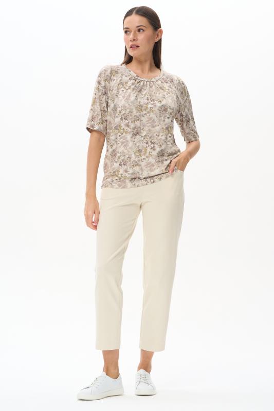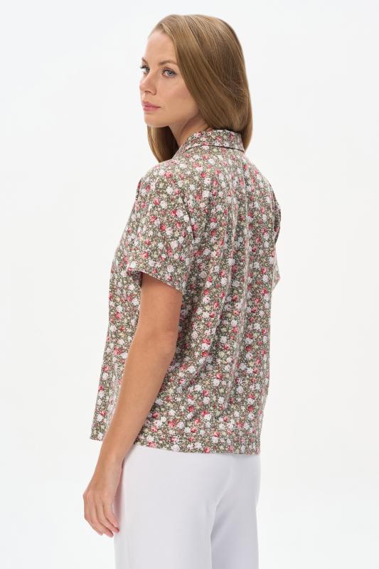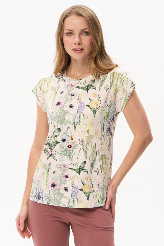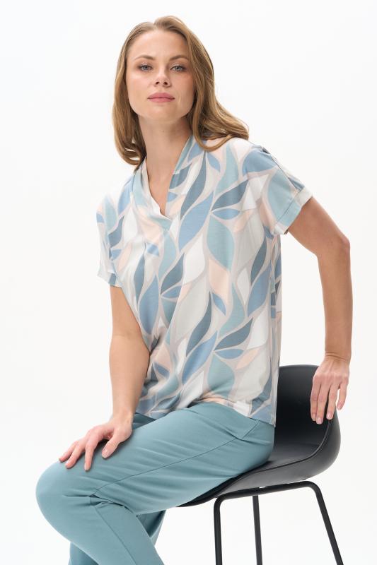 Нарядная блузка из тонкой шелковистой вискозы качества вортекс c дизайнерским рисунком растительная абстракция Модель со складками на воротнике - а-ля «апаш» в стиле пятидесятых, что придает изделию необыкновенную женственность. Рукава короткие с заниженной проймой. Эта приятная модель - идельный союзник для всех низов коллекции Рост модели 175 см;Цвет: мультиколор;Состав: 92% вискоза, 8% эластан