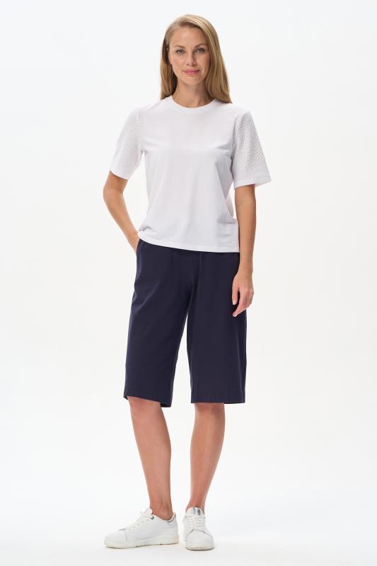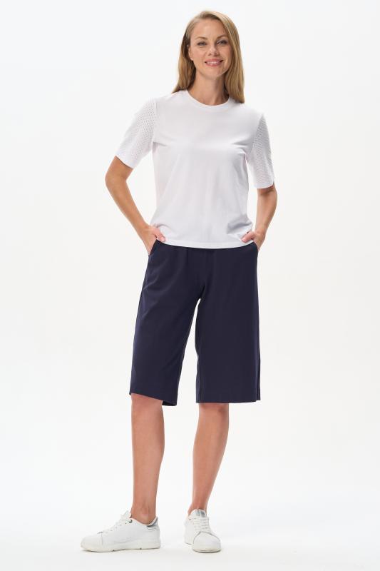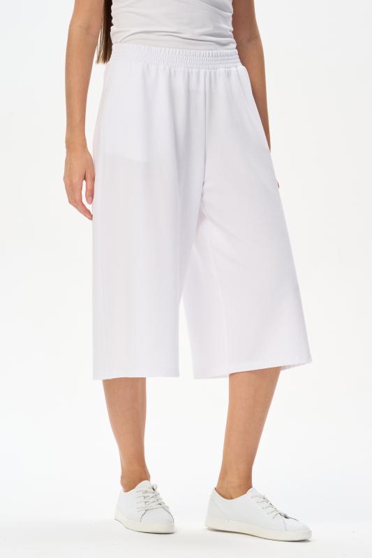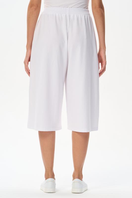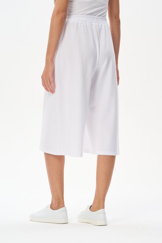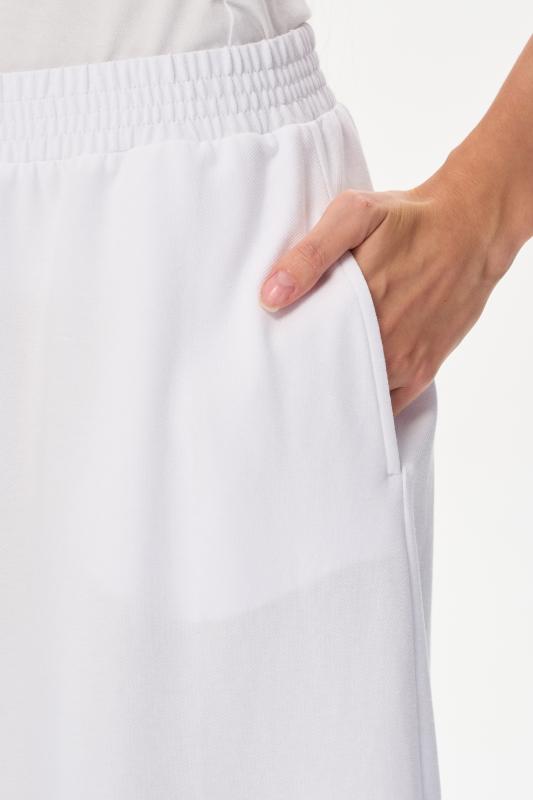 Модные брюки из тонкого джинскотта 165 гр в чистом белом оттенке. Благодаря конструкции и объему модель выглядит как юбка. Длина изделия до середины икр, карманы в боковых швах, пояс с эластичной лентой внутри. Стильная модель для летних образов. Рост модели 175 см;Цвет: белый;Состав: 80% хлопок, 14% полиэстер, 6% эластан