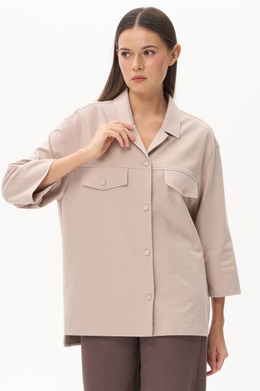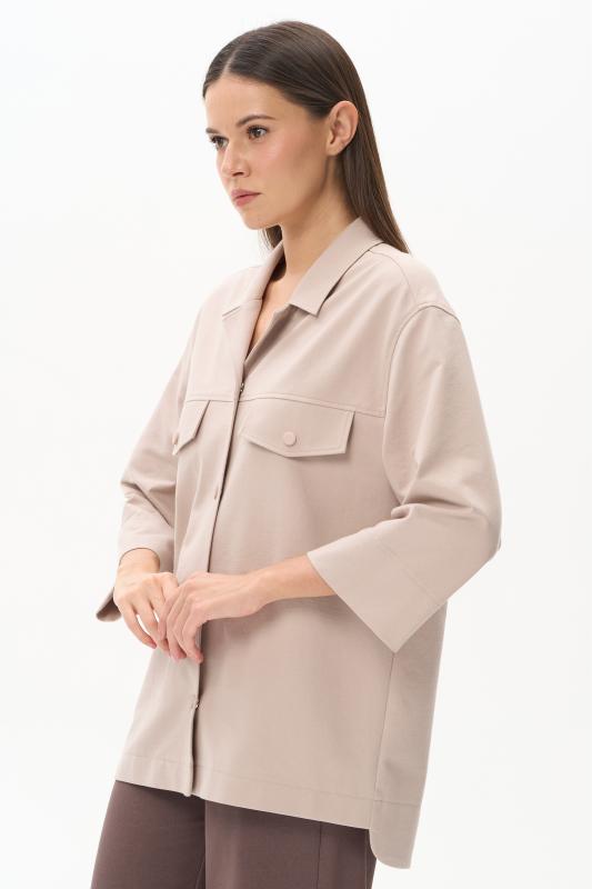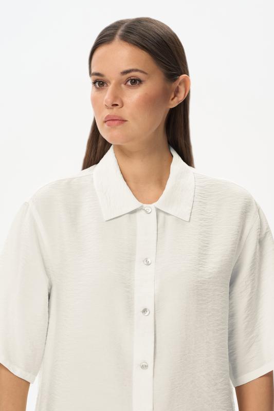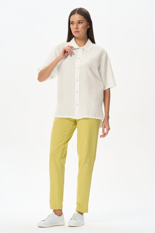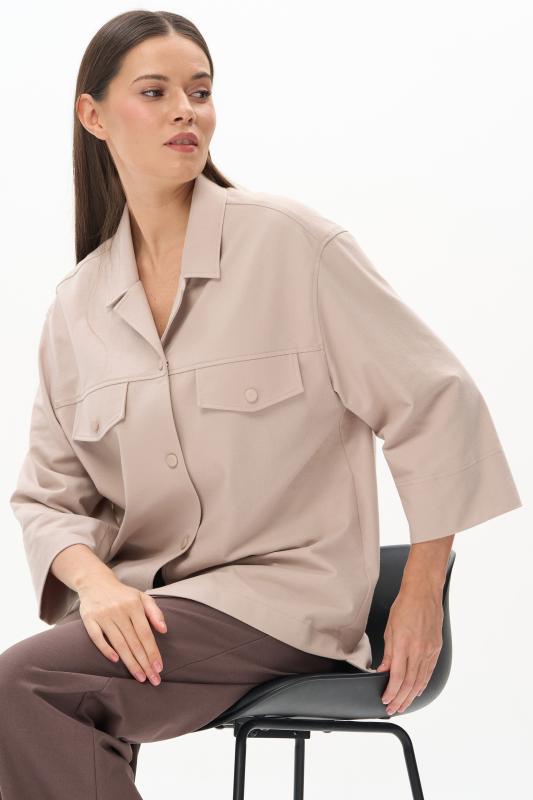 Блузка из лёгкой плательной ткани 120 гр в трендовом оттенке Белый песок. Модель свободная, отложной воротник, застежка на пуговицы, рукава за локоть, с разным уровнем длины спинки и полочки - все, что требует летний офис.Рост модели 175 см;Цвет: экрю;Состав: 88% вискоза, 12% полиэстер