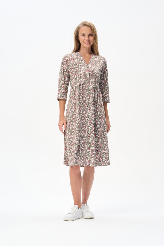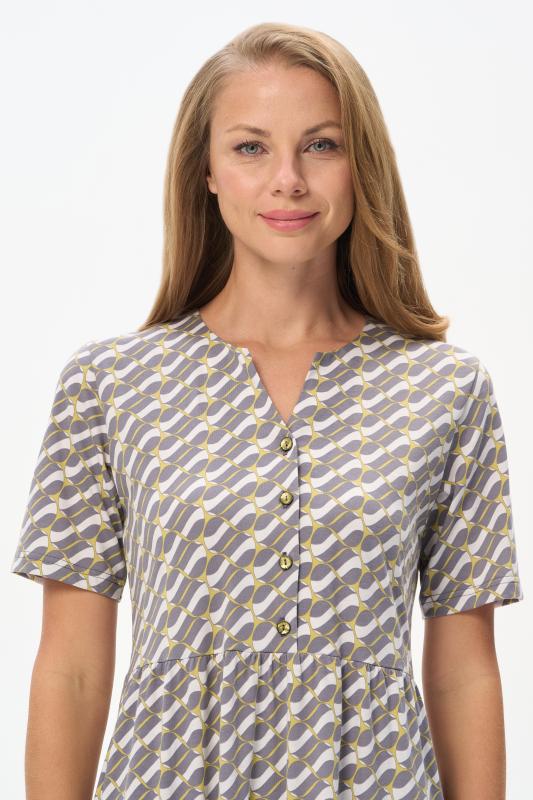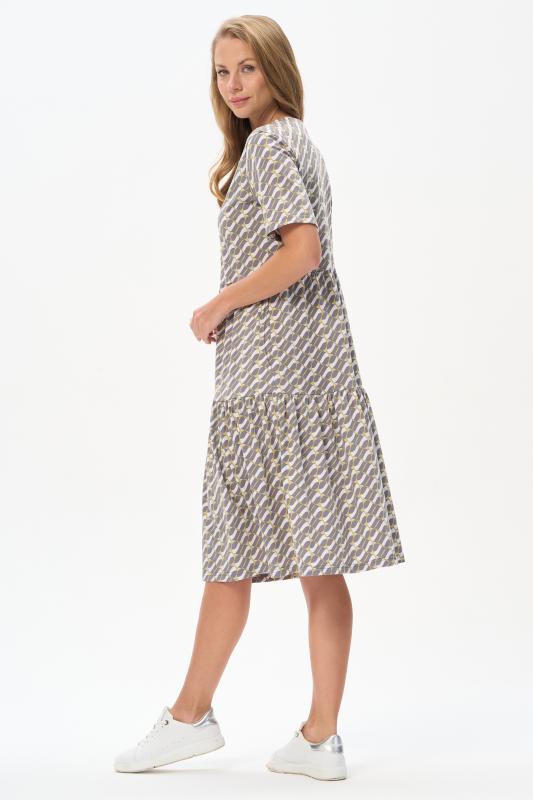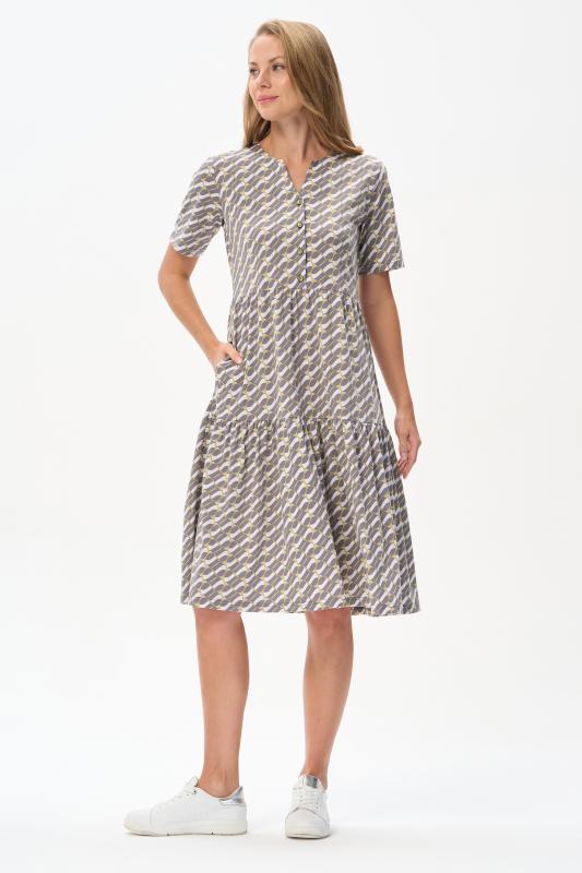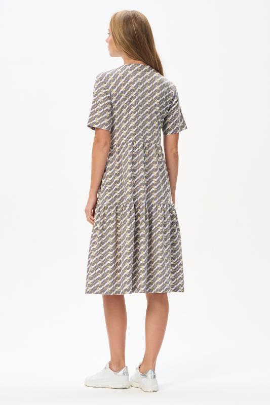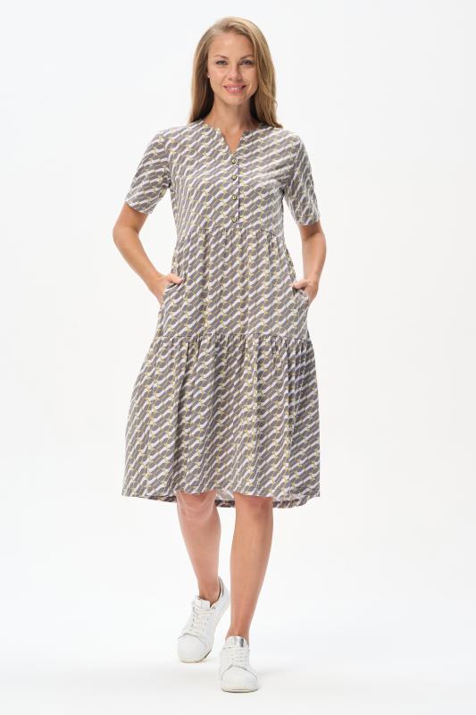 Комфортное ярусное платье из кулирки пенье 150 гр Графический рисунок в стиле Gucci в оттенках коллекции. Круглый вырез горловины, карманы в боковых швах. Модель прекрасно подходит для офиса благодаря рисунку, застежке на эффектные пуговицы и рукава до локтя. Универсальная модель для города и отдыха. Рост модели 175 см.;Цвет: серый;Состав: 100% хлопок
