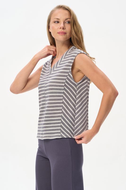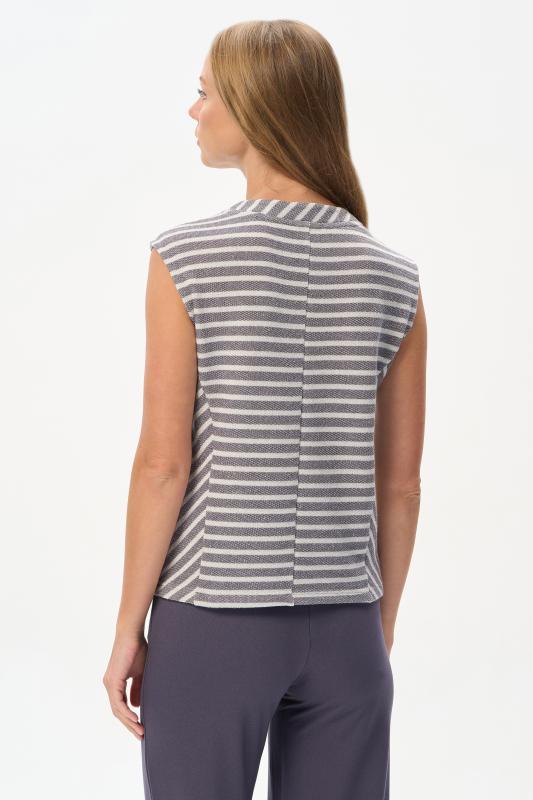 Жилет из фактурного жаккарда в полоску в оттенках коллекции 200 гр. Игра полос и декоративные строчки - эффектные особенности модели. Стильно смотрится как поверх футболок, так и самостоятельно. Рост модели 175 см.;Цвет: серый;Состав: 75% хлопок, 22% полиэстер, 3% люрекс