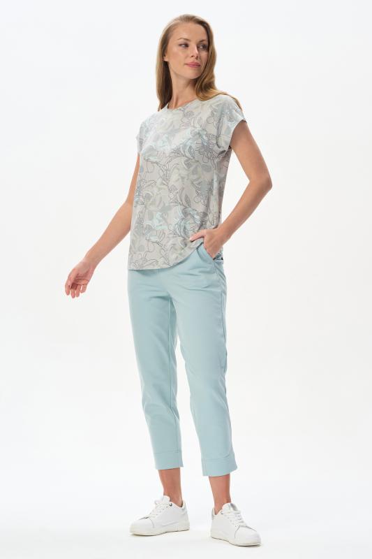 Футболка прямого силуэта из вискозного трикотажного полотна с эластаном. Круглый вырез горловины, цельнокроеные короткие рукава. Рост модели 175 см.;Цвет: мятный;Состав: 92% вискоза, 8% эластан