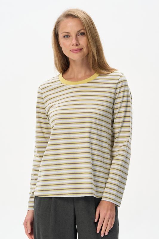 Повседневный базовый джемпер в полоску из хлопкового полотна качества пенье плотностью 186 гр. Модель с круглым вырезом горловины и длинными втачными рукавами. Комфортная, универсальная модель в трендовых оттенках: Рост модели 175 см;Цвет: молочный;Состав: 100% хлопок